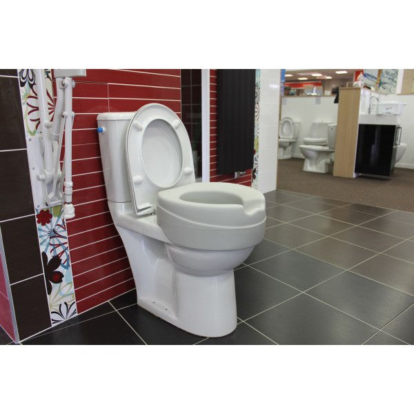 Auðvelt að taka af og setja aftur á með einu handtaki ef það eru aðrir á heimili sem þurfa ekki að nota upphækkun. Salernisupphækkunin er úr froðusvampi með vatnsheldri PVC húðunn sem er mjúkt og þægilegt að sitja á og veitir mikinn stuðning.