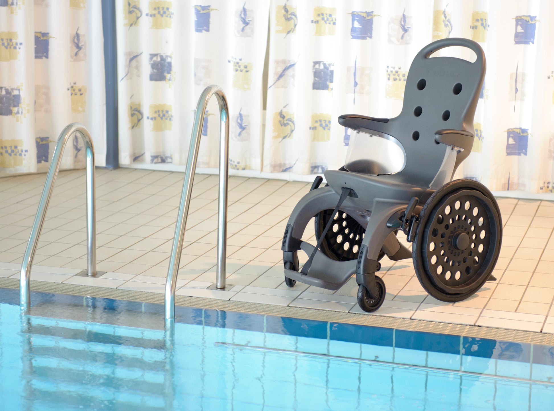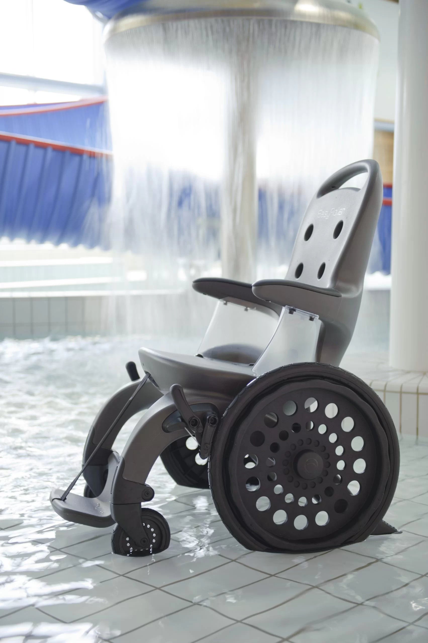 Easy Roller er sérstaklega hannaður fyrir baðstaði og þar sem ekki hentar að hafa járn eða málma. Stóllinn getur farið í kaf og sekkur í botn, svo hægt er að keyra hann í vatni. Stóllinn er einungis úr plasti, slitsterkur, einfaldur að sótthreinsa og nánast viðhaldslaus. Lágmarks aukahlutir og færanlegir þættir sem auðvelda reglulega notkun af ólíkum notendum. Easy Roller þolir háan hita eins og í saunaklefa og gufubaði. Stóllinn hefur verið prófaður og er vottaður fyrir slíkar aðstæður.
