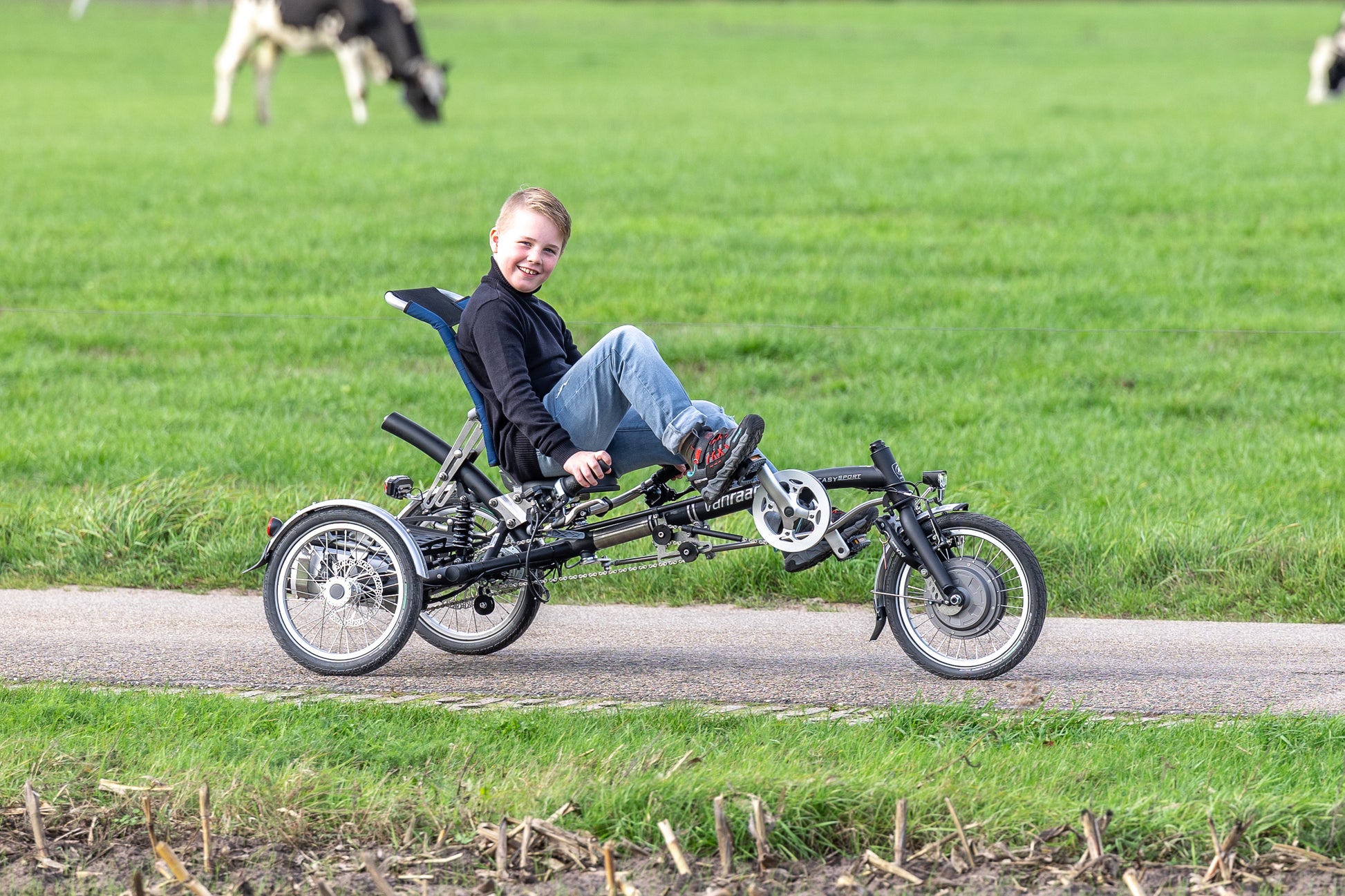 Easy Sport Small er barna þríhjól fyrir liggjandi stöðu þar sem stýrið er til hliðar við notanda. Easy Sport hjólið er tilvalið fyrir fólk sem hefur mikinn áhuga af hreyfinu, sem vilja þó hjóla í þægindum. Á þessu hjóli er legið í sætinu, sætið er þó stillanlegt. Ramminn er með fína dempun og gefur aukin þægindi. Stýrið er undir sætinu og leggur það minna álag á bak, háls, axlir og úlnlið. Rammi með stillanlegri lengd og hentar því notendum frá 132cm til 150cm að hæð.