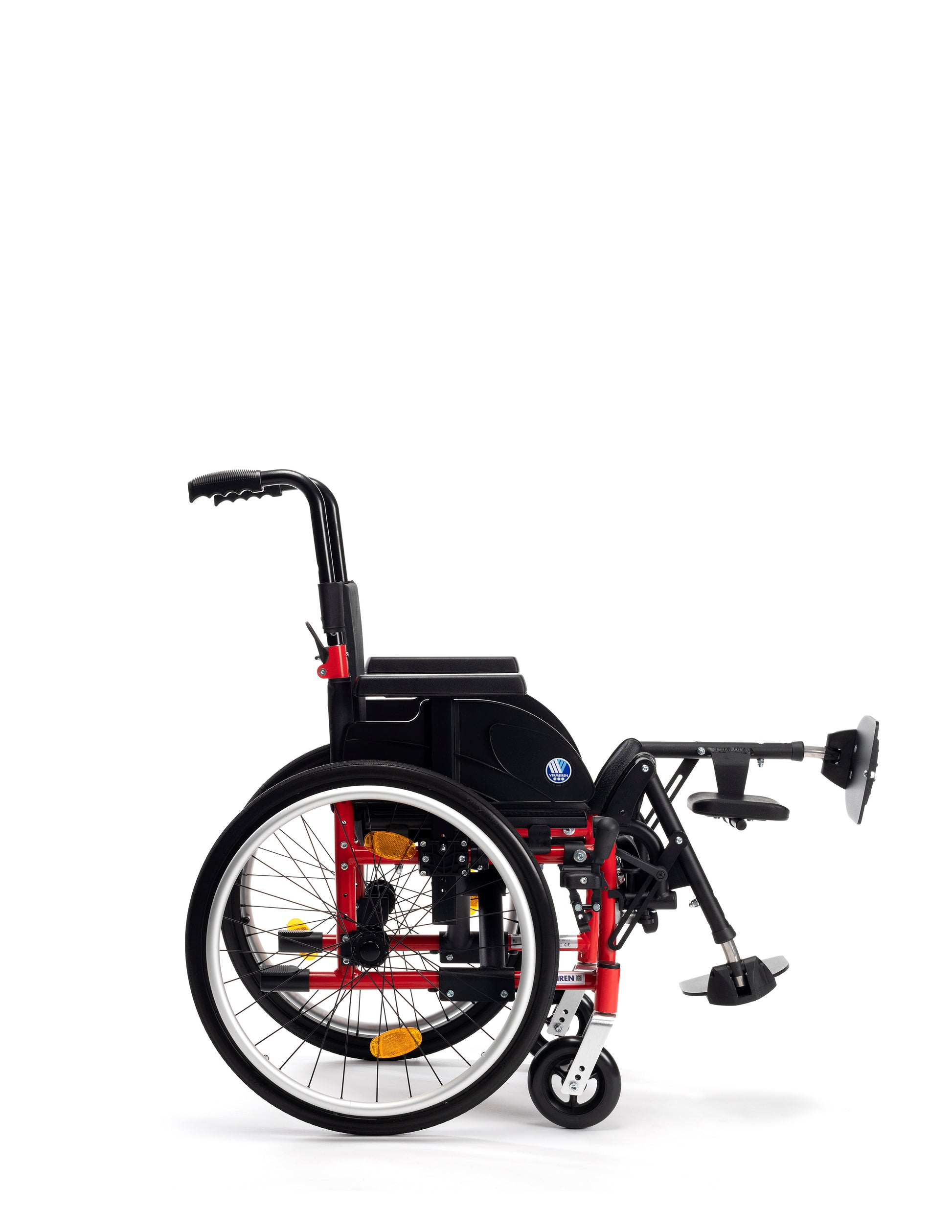 Nettur og fjölhæfur krossramma barnahjólastóll. Hannaður til þess að aðlagast notandanum en ekki notandi að tæki.
