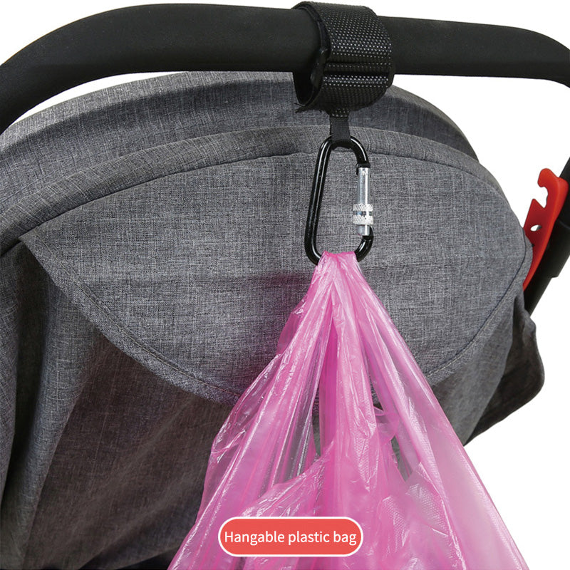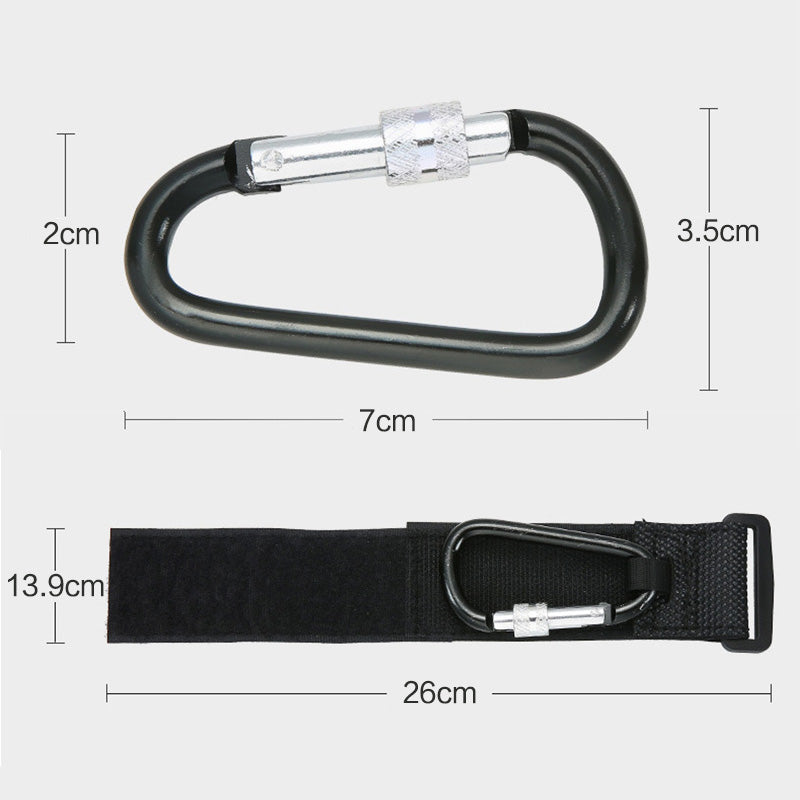 Hentug festing með karabínu sem hægt er að festa á ýmislegt svo sem kerrur, barnavagna, hjólastóla og hjól. Sniðugt til að hengja töskur, poka og aðra hluti. Hægt er að læsa karabínu svo hún opnist ekki.