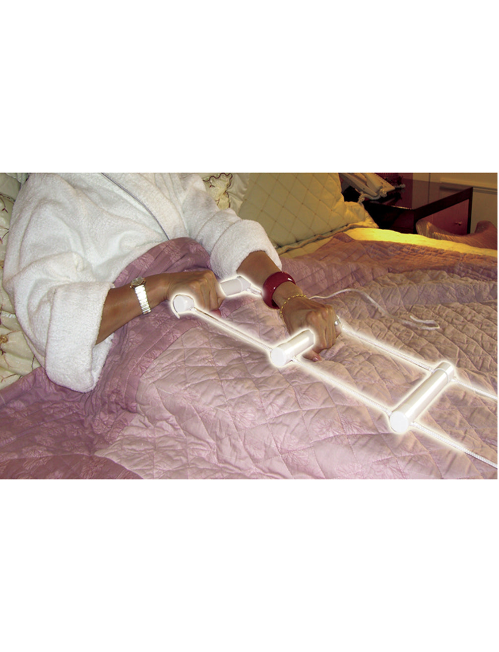 Stigi sem festist við rúmgafl, rúmfót eða rúmgrind. 6 þrep til þess að notandi geti stutt sig við færslu fra liggjandi í stitjandi stöðu eða öfut. Einföld og fyrirfaralítil lausn til þess að auka sjálfstæði og flutning.