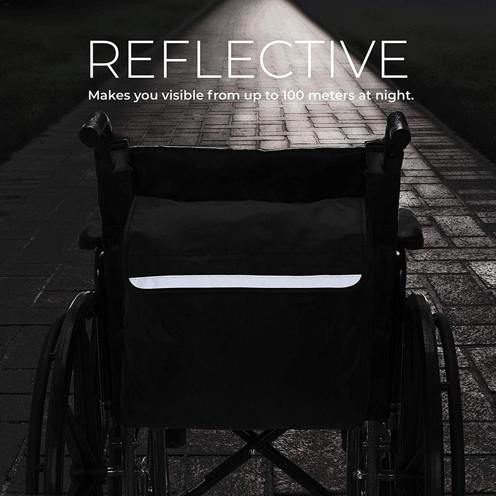 Taska sem festist aftan á hjólastól með endurskinsmerki. Tilvalið til þess að geyma alskonar aukahluti s.s. fatnað, flöskur, tölvu, innkaup eða aðrar nauðsynjar. Taskan er úr Oxford efni sem er bæði vatnshelt, slítsterkt og hrindir frá sér óhreinindum. Að innanverðu er hún fóðruð með sama efni. Taskan hentar því ákaflega vel Íslenskum veðuraðstæðum.