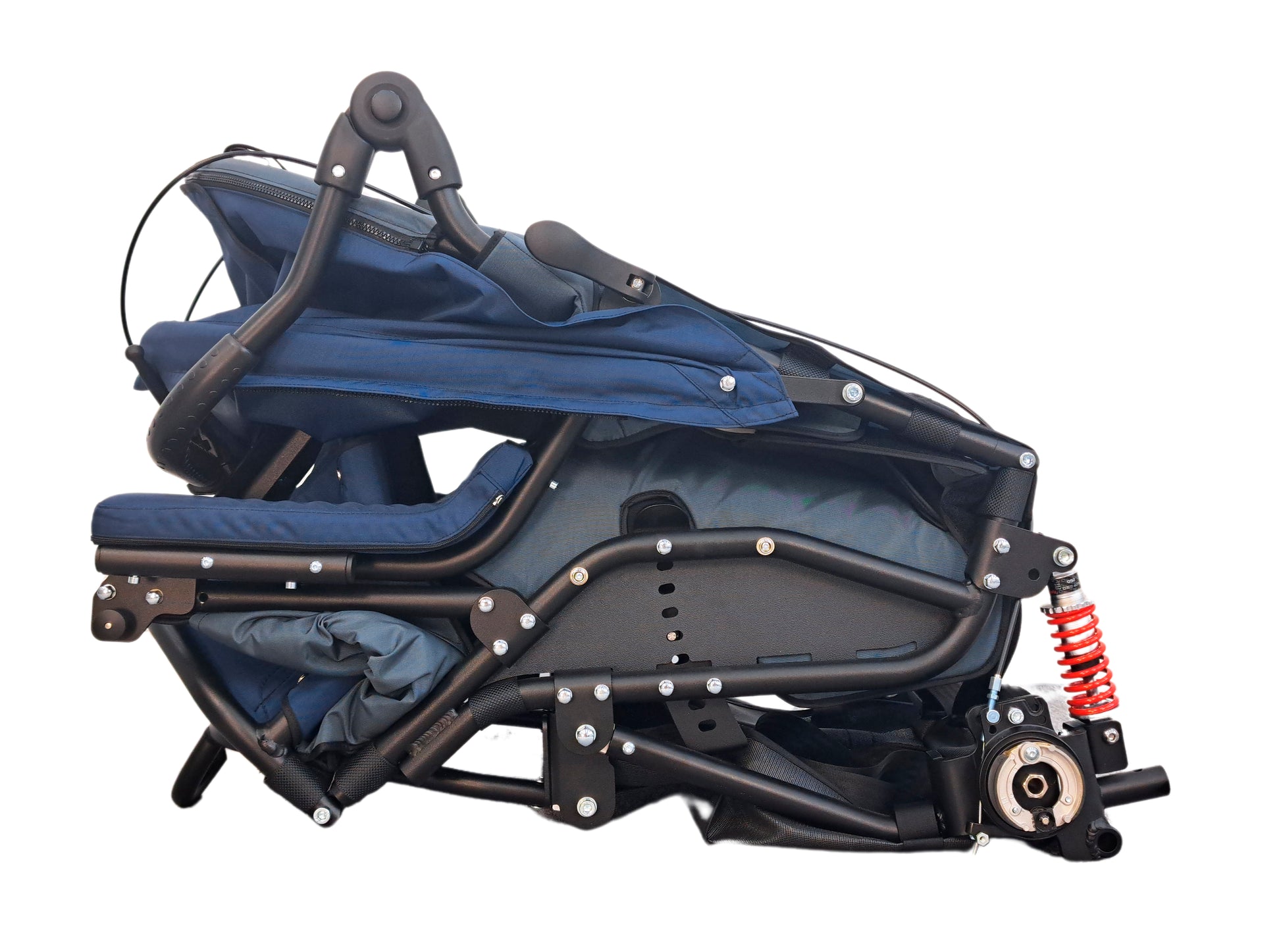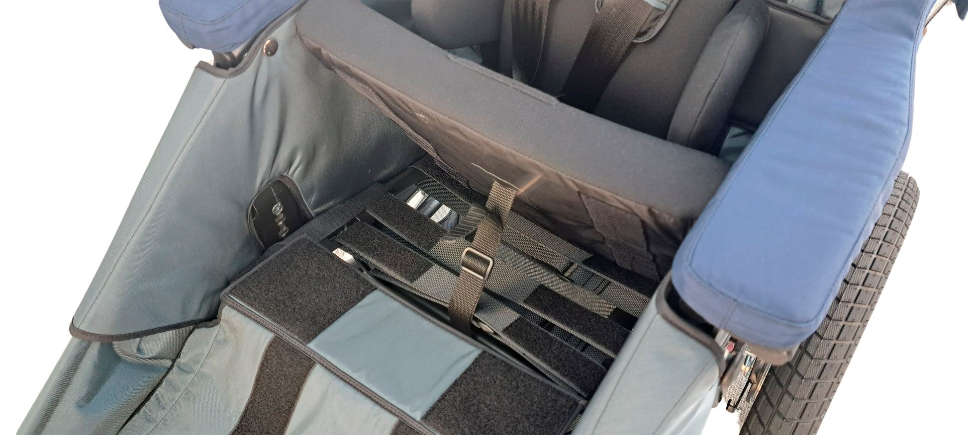 Staðlaður búnaður Wismi G2: Rammi, áklæði, canopy, 5 punka belti og 12.5" "off road" framdekk.