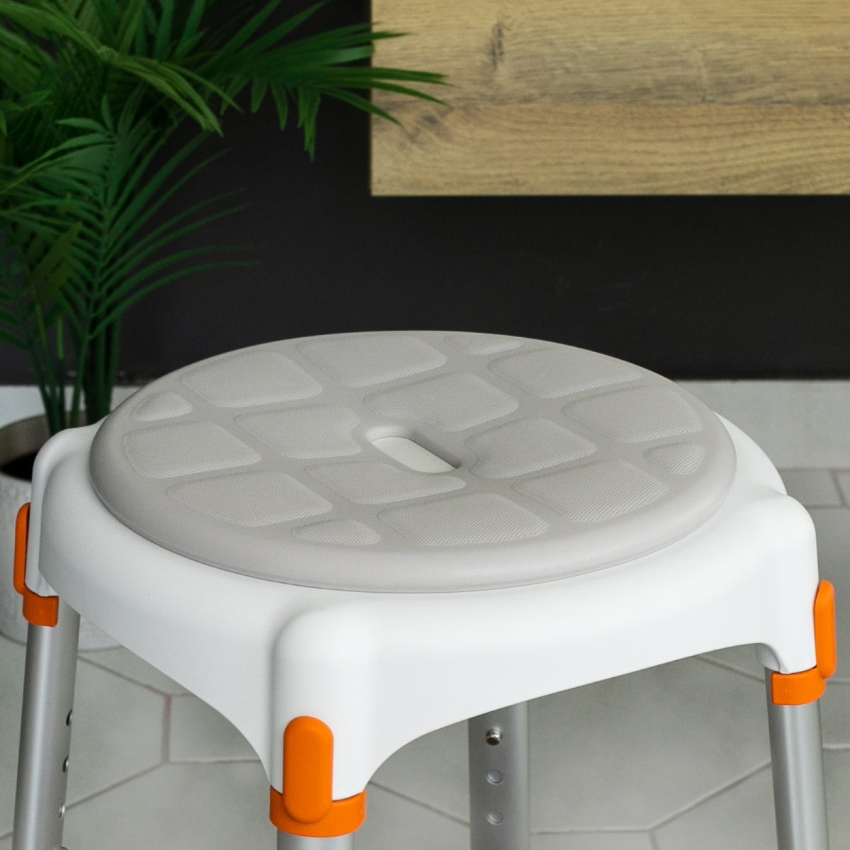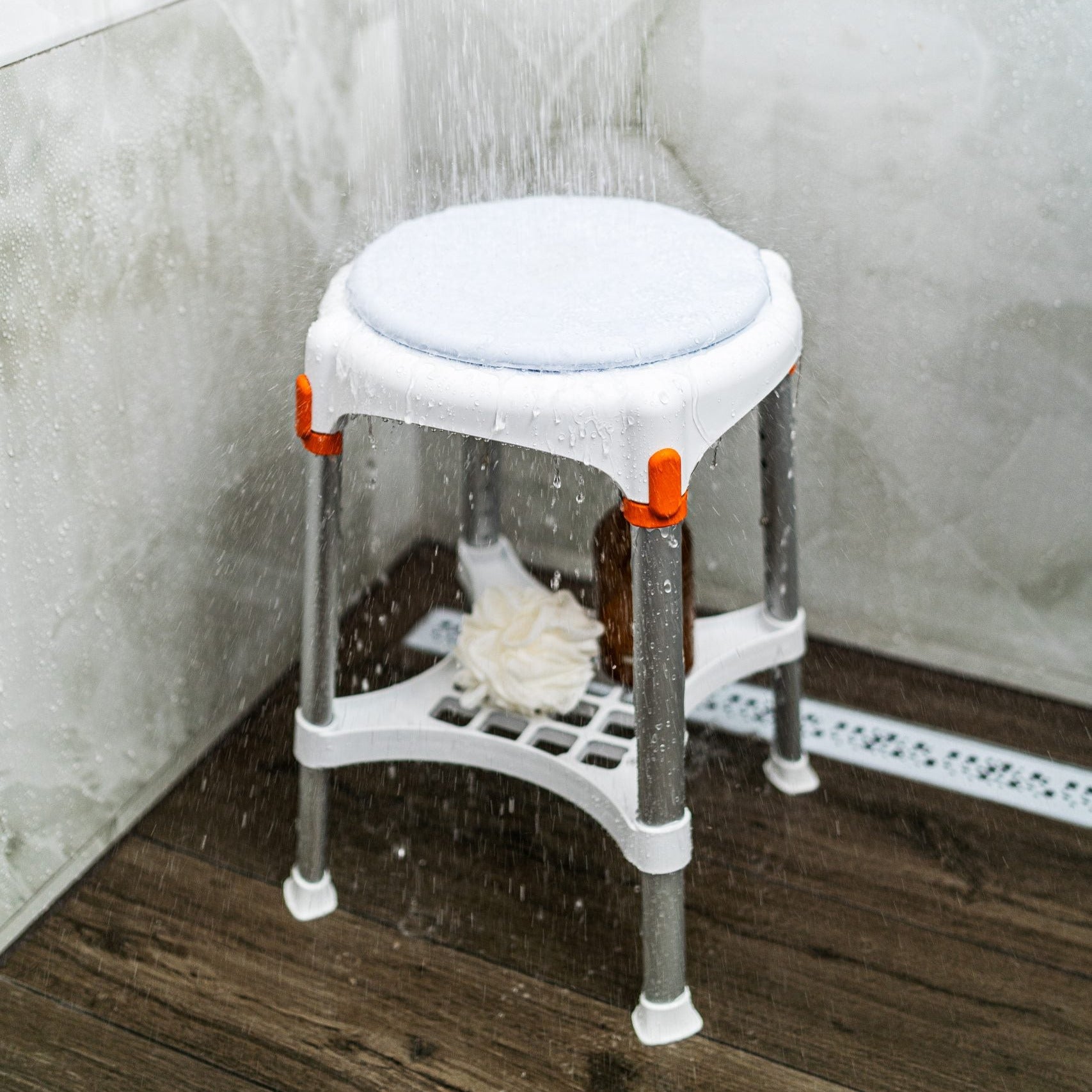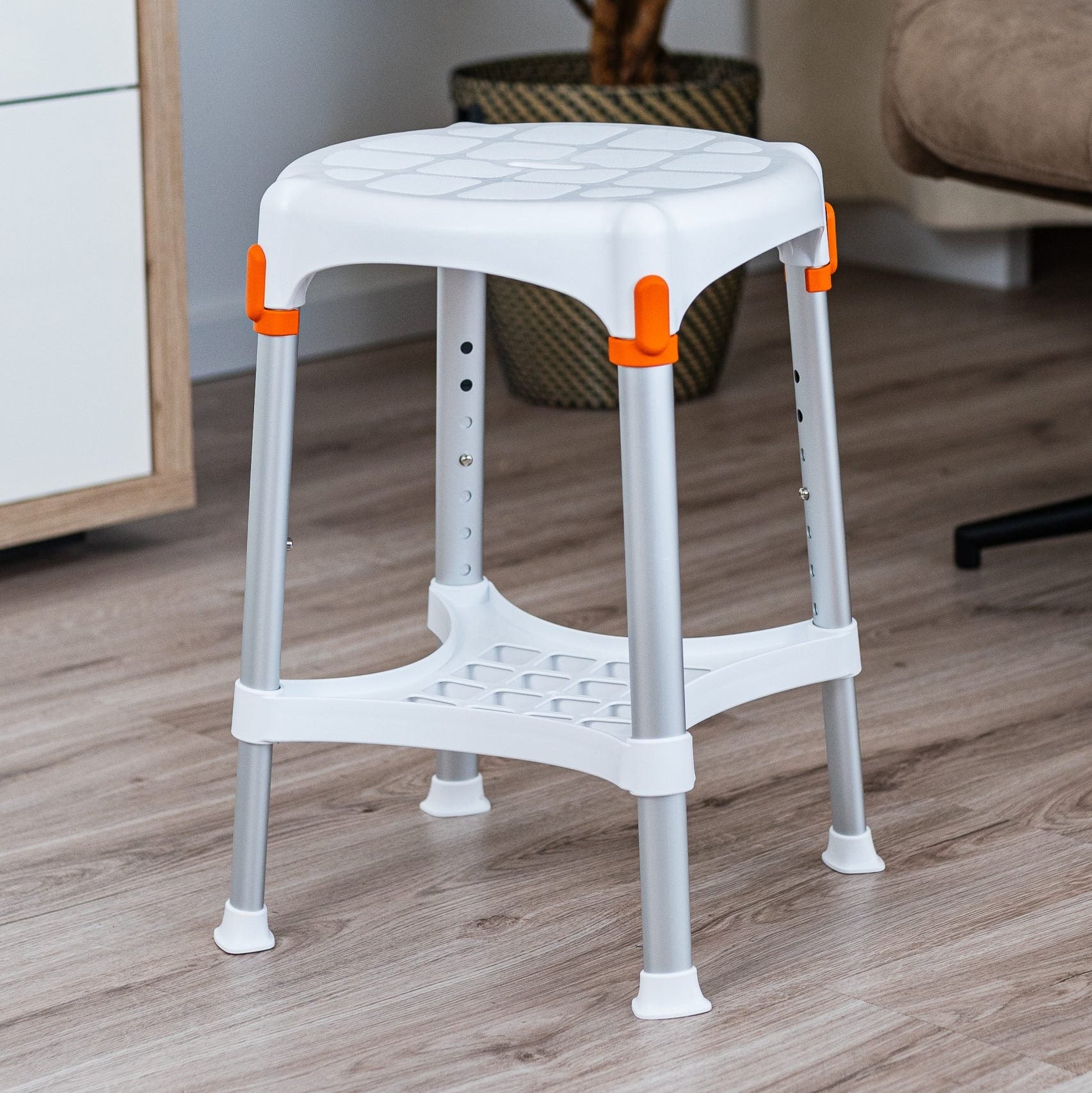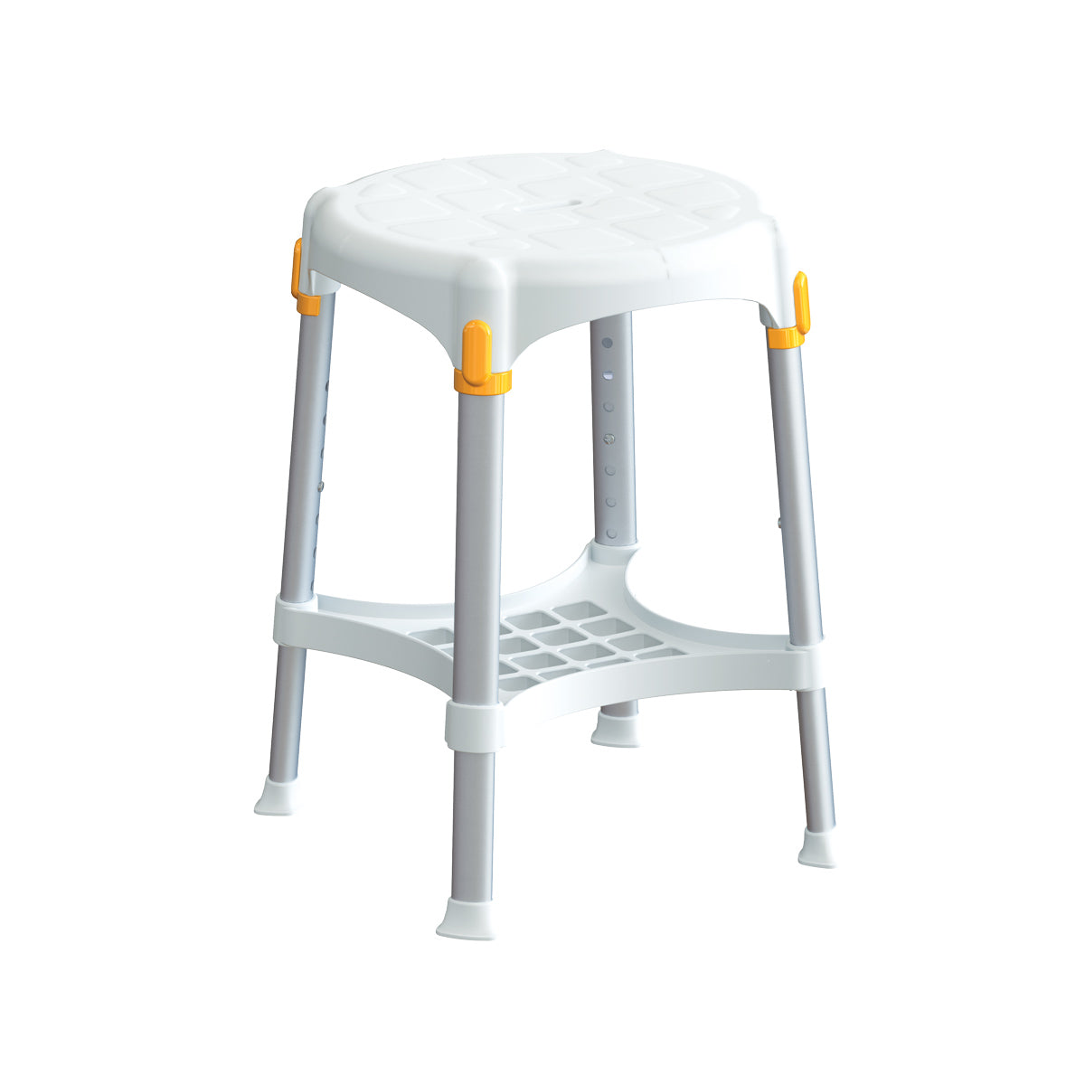 Hækkanlegur kringlóttur baðkollur sem eykur öryggi við sturtuferðir og snyrtingu. Bakki undir eykur stöðugleika og þar er hægt að geyma snyrtivörur. Hæð er frá 39 til 54 cm frá gólfi. Vandaður, stílhreinn og handhægur í geymslu.