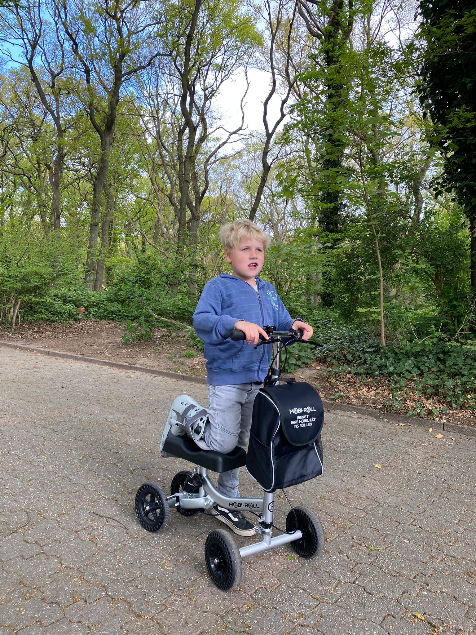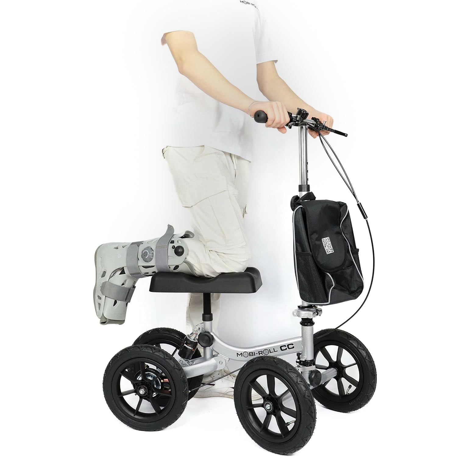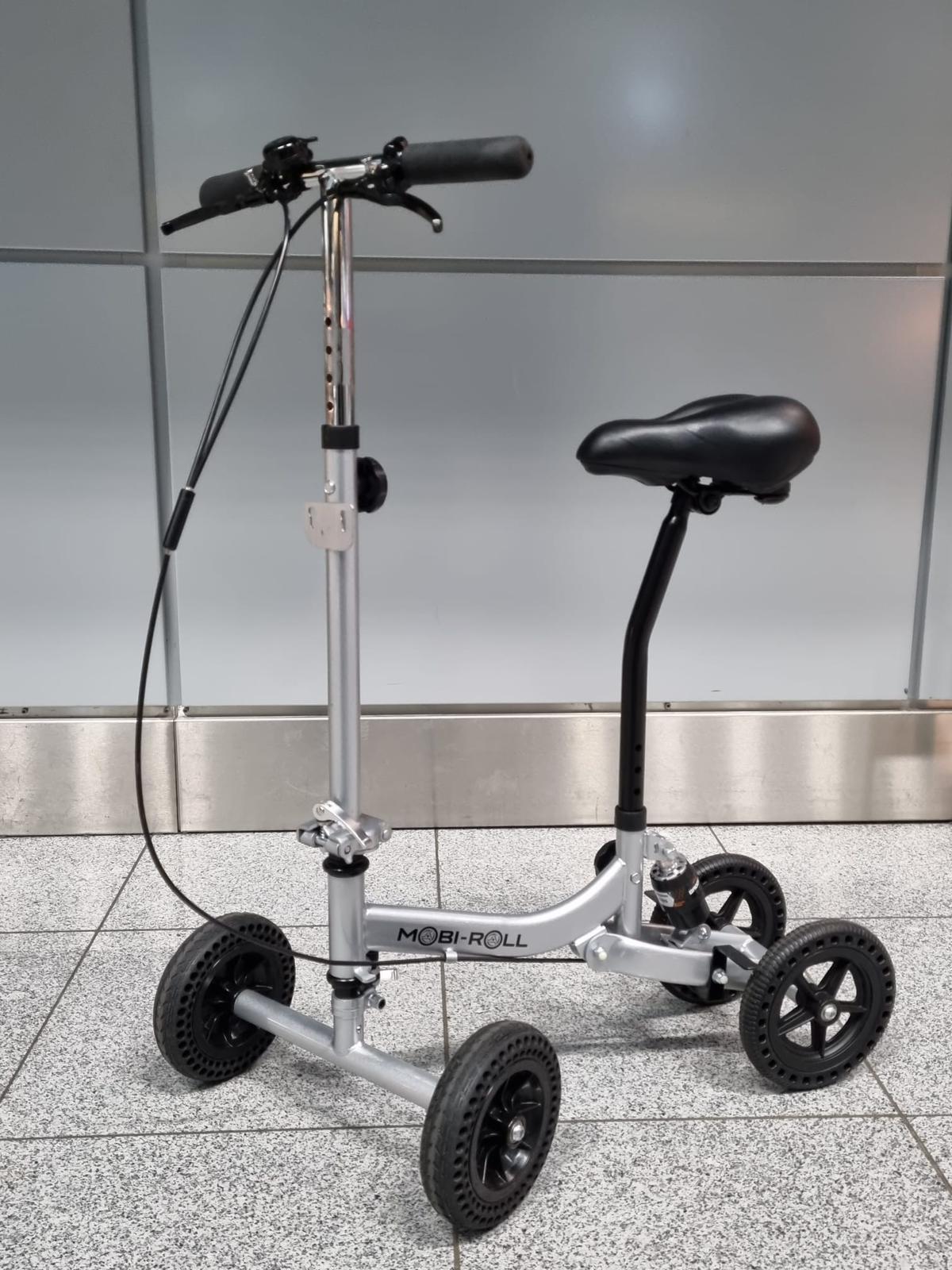 Hnéhjól er mjög hentugt í þeim tilfellum sem það eru meiðsli eða brot í fæti fyrir neðan hné. Hnéhjól getur komið í staðinn fyrir hækjur eða hjólastól og veitir mun betri möguleika á hreyfanleika. Mobi-Roll hnéhjólið getur þannig hjálpað þér að halda áfram að vinna dagleg verkefni. Hnéhjólið er með dempara sem eykur þægindi sérstaklega í útiveru. Mobil-Roll hnéhjólið kemur með tösku framan á stýrið svo þú getir geymt það nauðsynlegasta.
