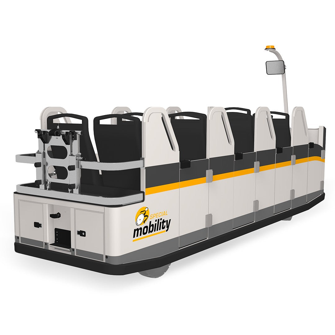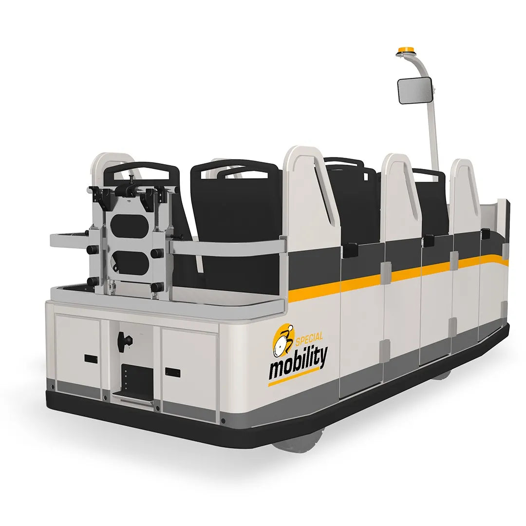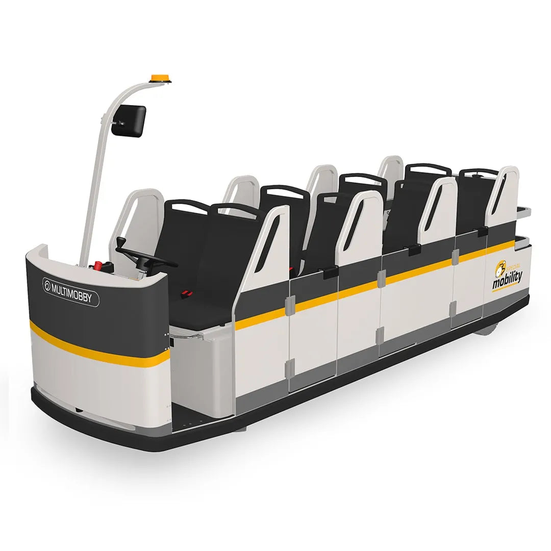 Multimobby er hannaður með bæði farþega og rekstraraðila í huga, til að tryggja hnökralausa, örugga og þægilega ferðaupplifun. Multimobby býður upp á háþróaða öryggis og þægindaeiginleika sem eldri flutningavagnar höfðu ekki, og setur þannig nýtt viðmið í flugvallarflutningum. Fæst í 6- og 8 sæta útgáfum, og veitir þetta farartæki þægilegan og öruggan akstur fyrir alla farþega, með snjöllum eiginleikum sem eru sérsniðnir til að bæta flugvallarrekstur.