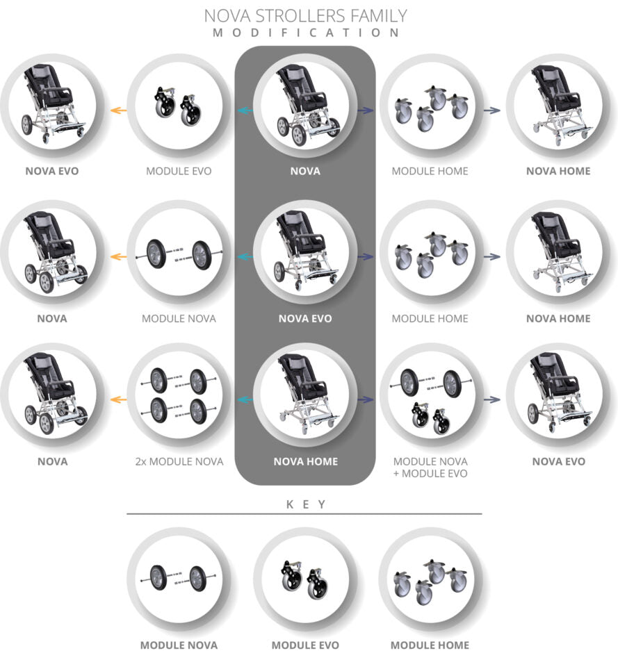 Nova kerran er hugguleg kerra fyrir einstaklinga með spastískar hreyfingar, mikla vöðvaspennu, eiga erfitt með að sitja kurr eða þurfa á auknum stuðning að halda. Sætið er djúpt og heldur vel við líkamann. Þessi kerra er einstakelga hentug fyrir íslenskar aðstæður þar sem að hægt er að fá loftdekk og auka lengd milli öxla á hjólum fyrir aukinn stöðugleika. Hægt að halla aftur til slökunar. Kerran er stílhrein og leggst vel saman svo auðvelt er að hafa í skotti eða í ferðalag.