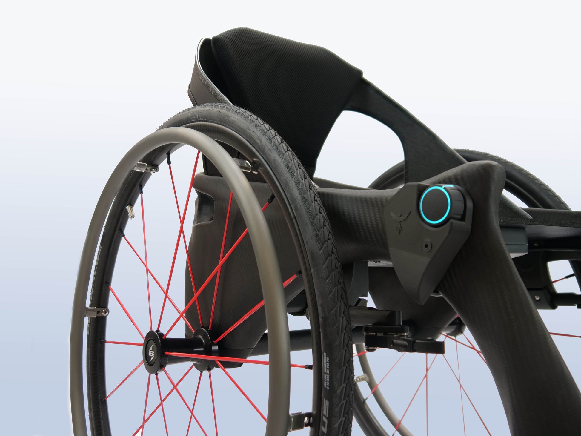 Handsmíðaður hybrid hjólastóll frá Skotlandi sem er varla samanburðshæfur. Það krefst 80% minni orku að snúa hjólunum á Phoenix i í samanburði við aðra handknúna hjólastóla.