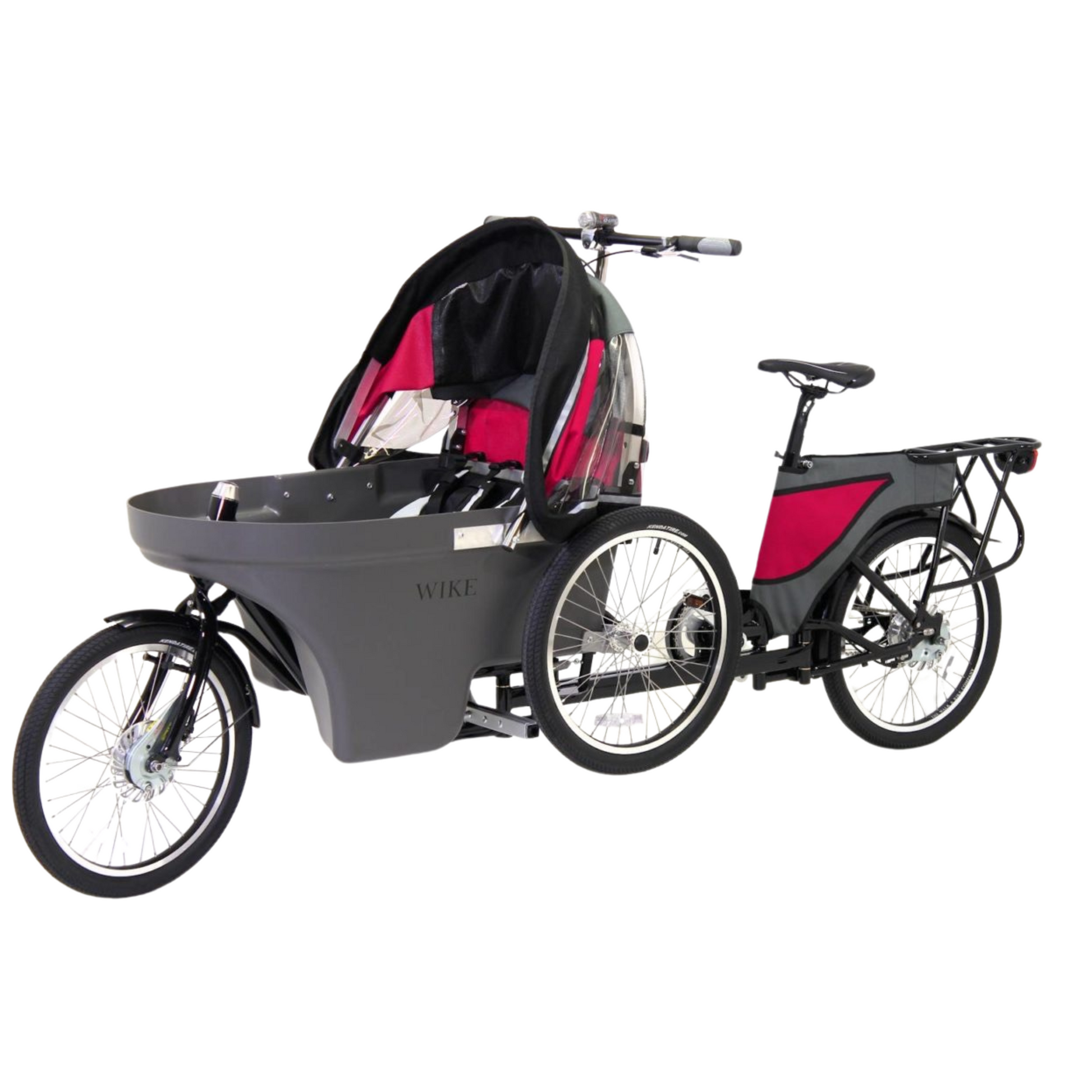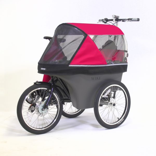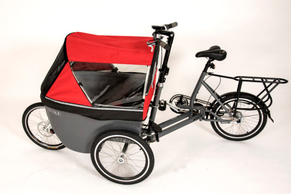 Flugnanet, endurskin, regnhlíf, 20" álgjarðir, ljós að framan og aftan, 7 gíra Shimano Nexus gírar. Belti fyrir tvö börn.