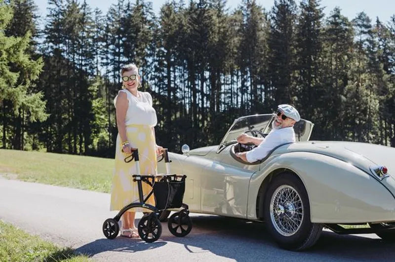 Vönduð göngugrind sem kemur með geymslukörfu, endurskinsmerkjum og stafahaldara