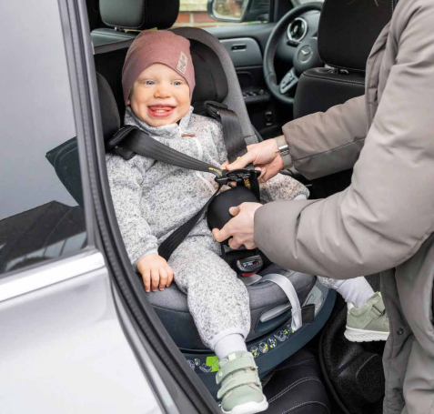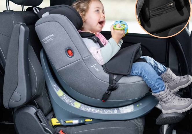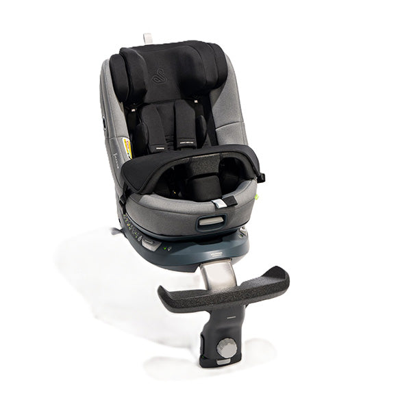 360° snúningsbase með ISOFIX festingum. Vottaður I-size. Bakvísandi til allt að 4 ára. Hægt að nota framvísandi eftir að barn nær 76cm í hæð eða yfir 15 mánaða.
