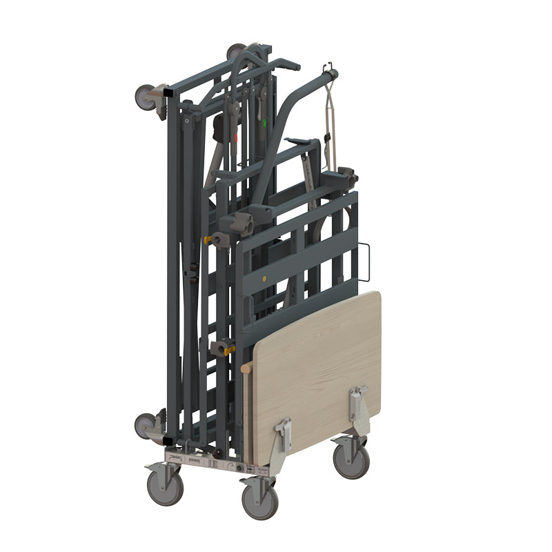 Undirstell og hliðargrindur úr svörtu epoxy húðuðu stáli, gaflar úr beyki. Samanleggjanlegar hliðargrindur sem ná 3/4 af lengd rúms.