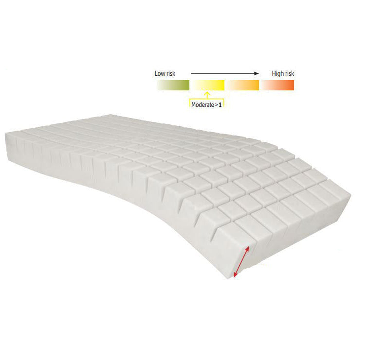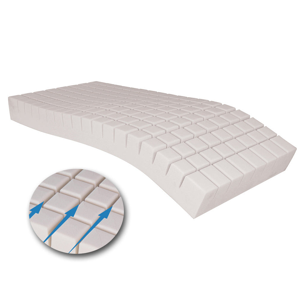 - Sjúkradýna með 14 cm þykkum teningsskornum HR foam svampi (38 kg/m3).