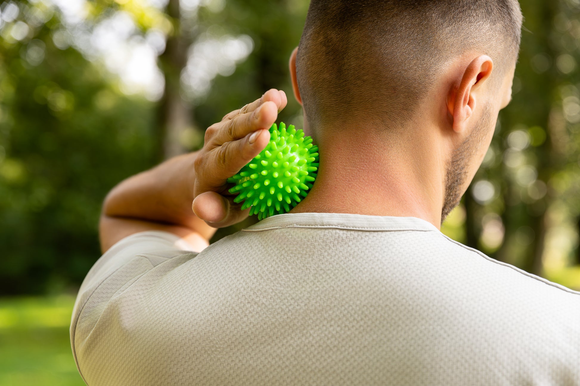 Nuddbolti með göddum úr PVC til þess að nota eftir meiðsli, við nudd og auka blóðflæði.