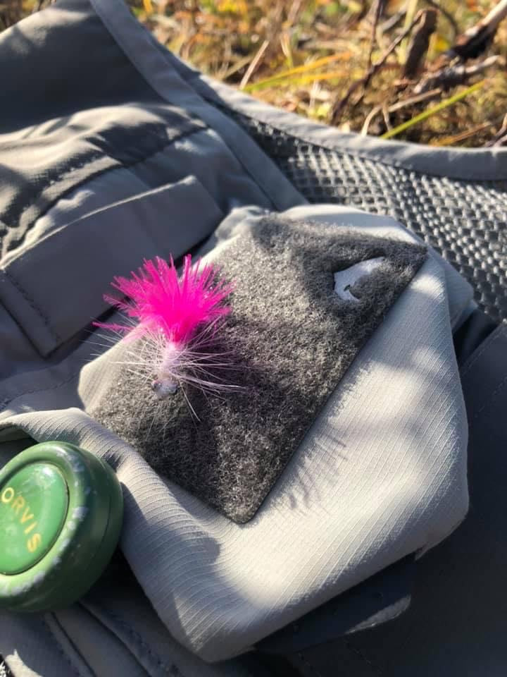 Flugan er hönnuð og hnýtt af Björgvini Hólm Jóhannessyni, frænda Sunnu Valdísar sem er eini AHC sjúklingurinn á Íslandi.