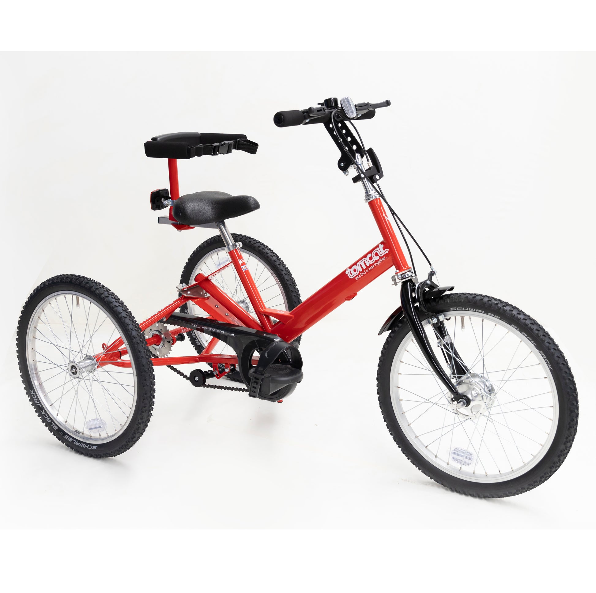 Tomcat Fizz þríhjólið er hannað til að henta einstaklingum með ýmsar fatlanir og færniskerðingar er öruggt til notkunar utandyra, við ýmsar fjölskyldu athafnir og auðvelt í flutning.