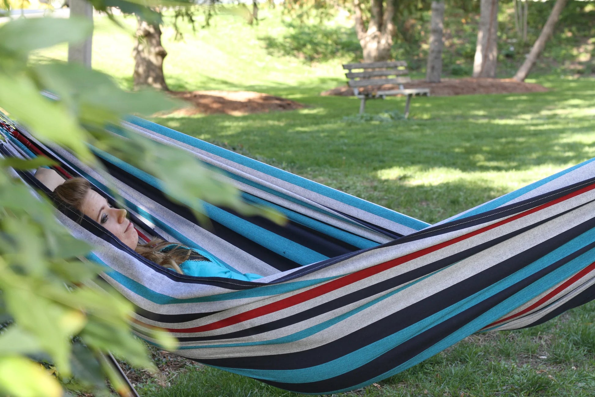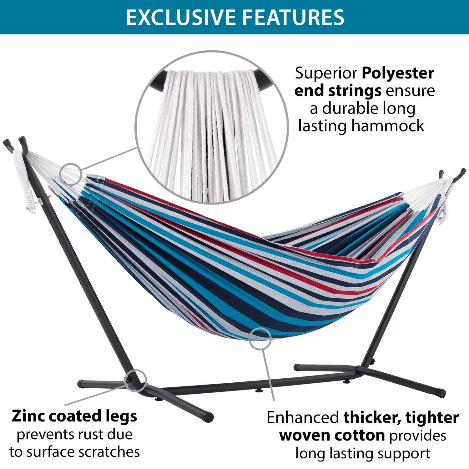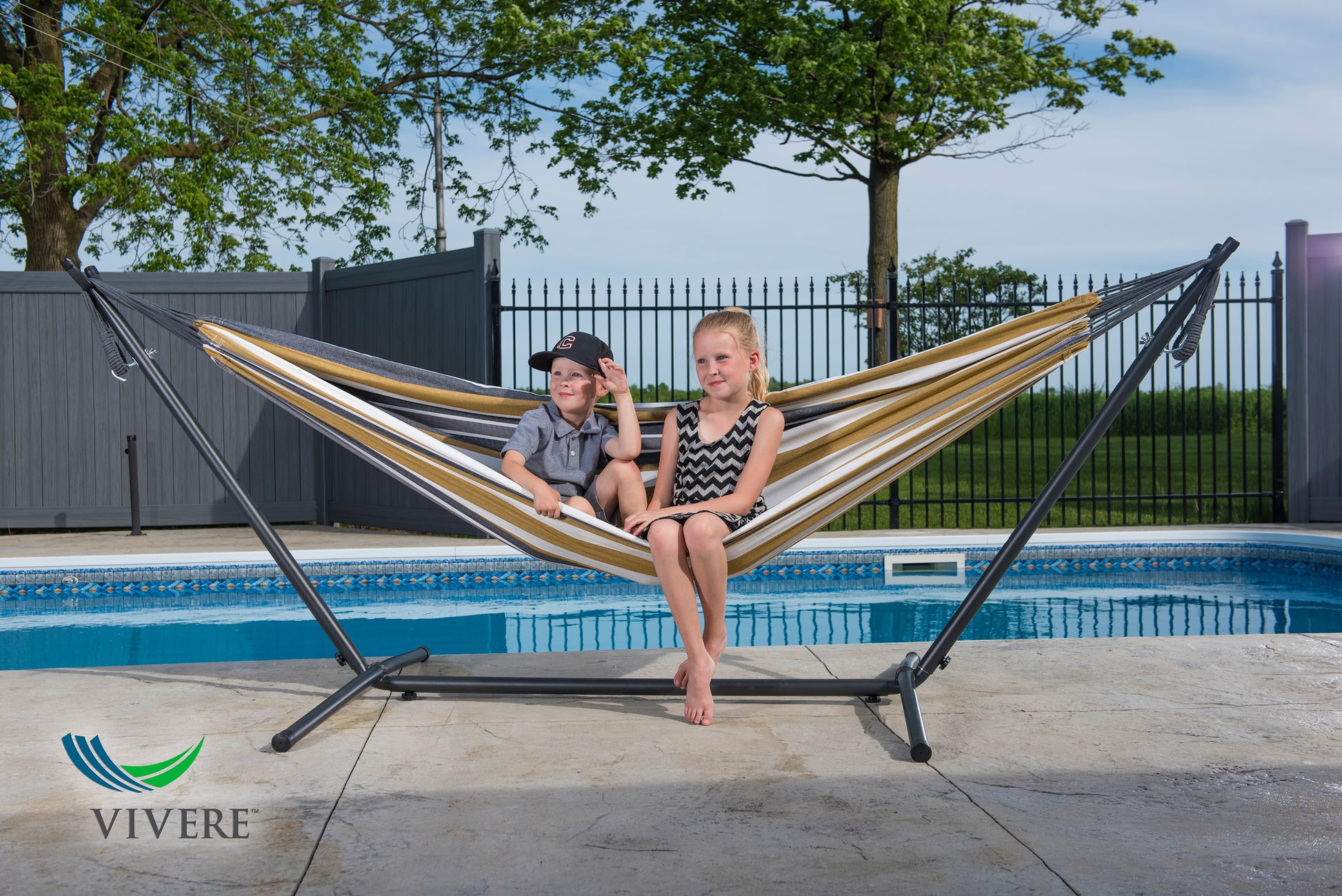 Vönduð tvöföld hengirúm með stand og tösku til að taka með í ferðalagið. Tilvalið fyrir alla, unga sem aldna! Eigðu góðar stundir með börnunum á góðviðrisdögum í garðinum, á ferðalaginu eða bara slappaðu af með góða bók við hönd á sólríkum sumardegi!