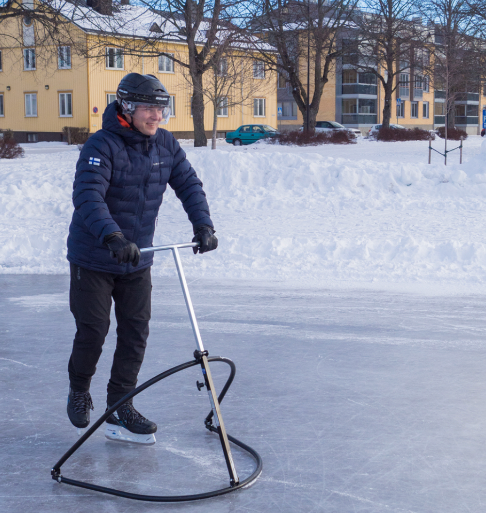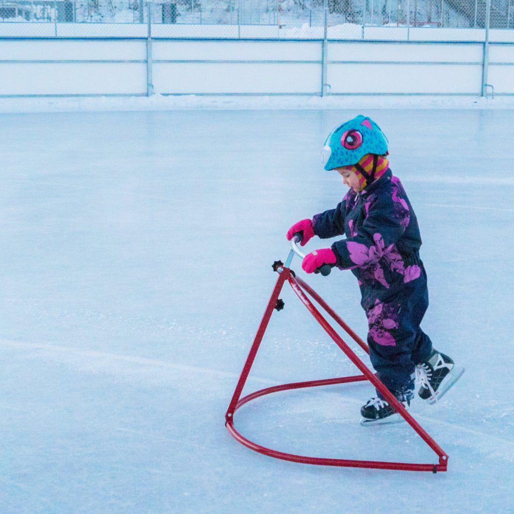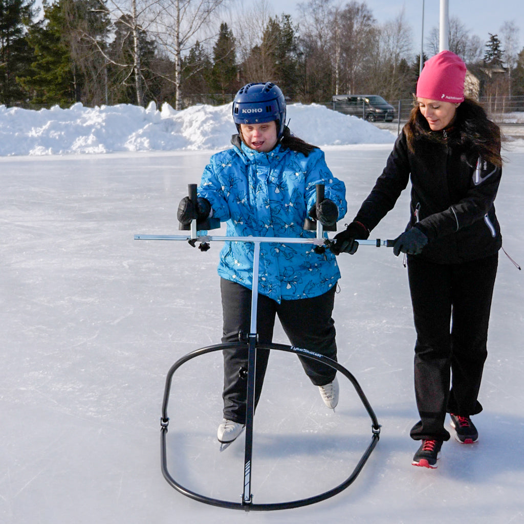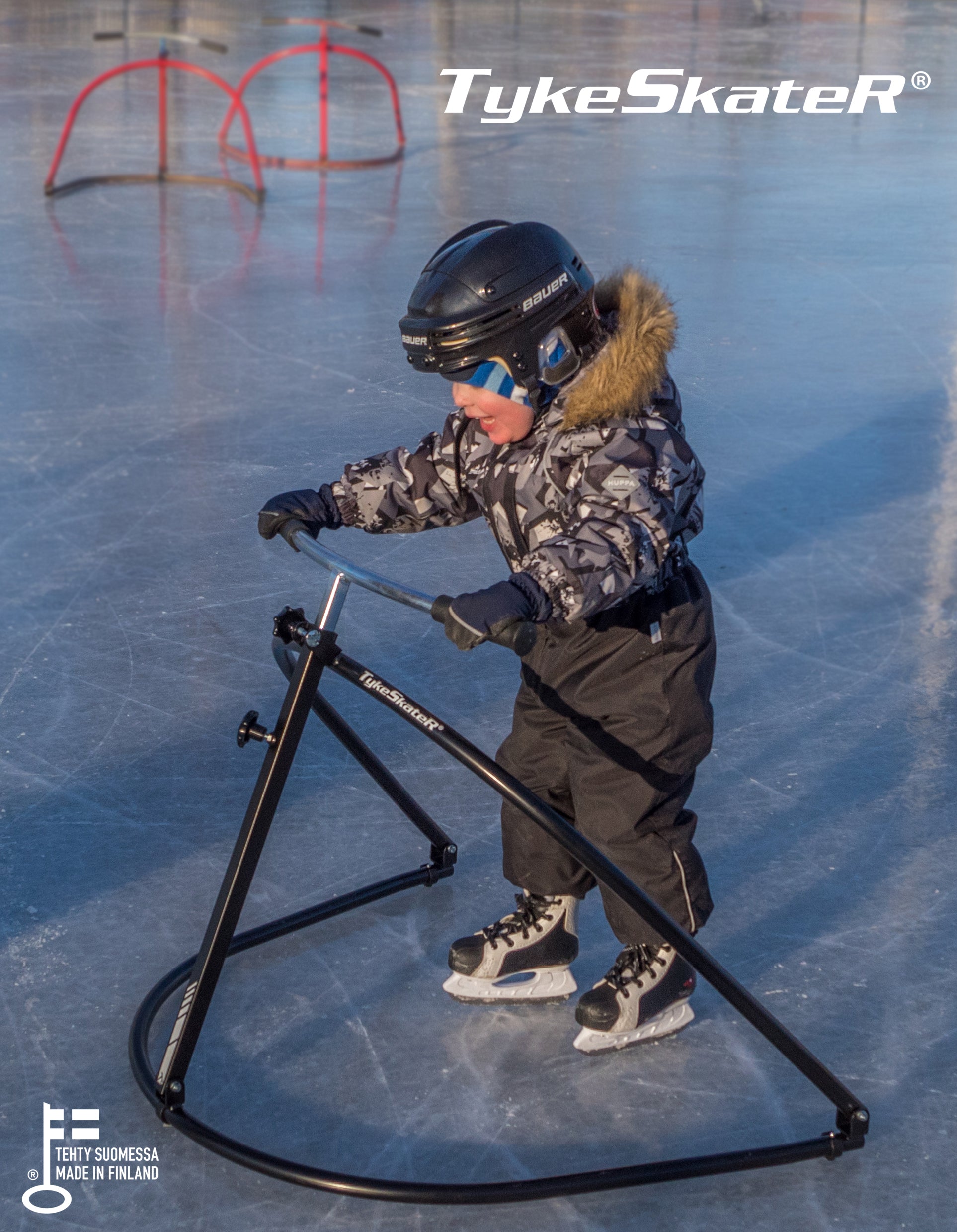 TykeSkateR skautaþjálfinn er ætlaður fyrir þá sem þurfa aðstoð á skautum eða eru að stíga sín fyrstu skref á skautasvellinu. Skautaþjálfinn er hæðarstillanlegur og hentar því öllum aldurshópum ungum sem öldnum. Hægt er að fá hjól á þjálfann svo hægt er að nota hann með línuskautum á sumrin. Einnig er í boði háir armstuðningar sem veita góðan stuðning, auðvelt að brjóta saman til geymslu eða til að ferðast með. Neðri hluti þjálfans er úr galvaniseruðu stáli sem er slítsterkt og gefur góða endingu. Kringlótt lögun skautaþjálfans lágmarkar mótstöðu sem lætur hann renna auðveldlega yfir ísinn.