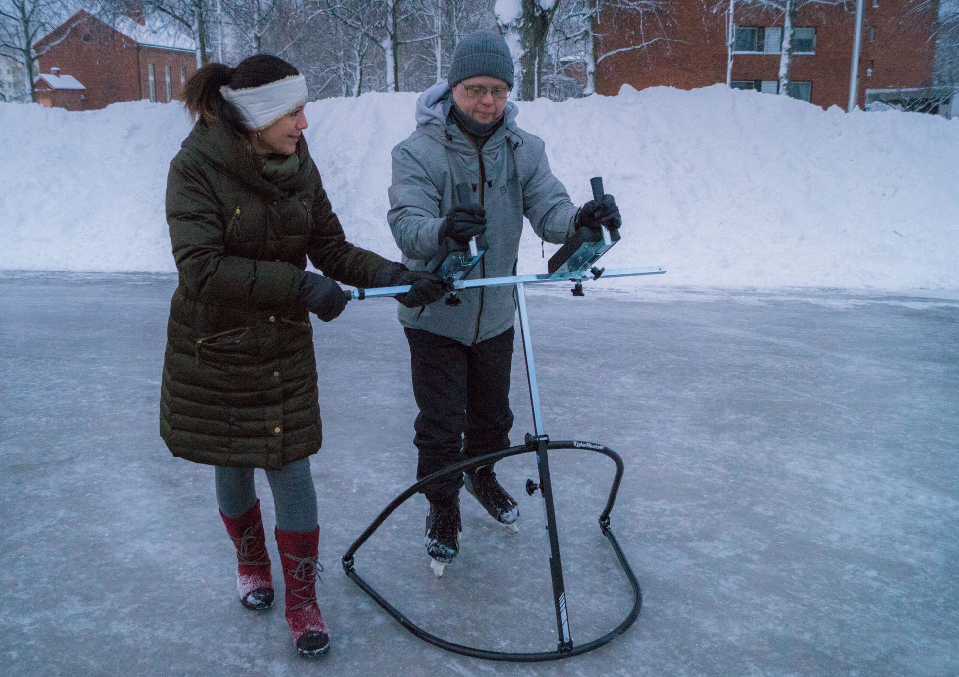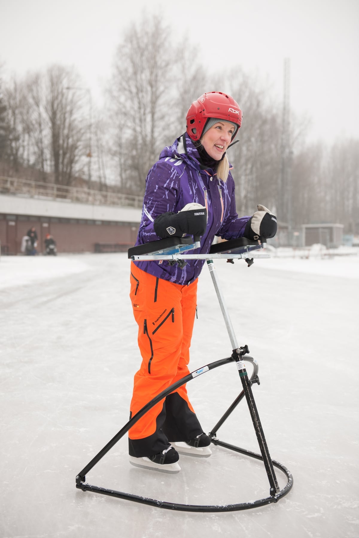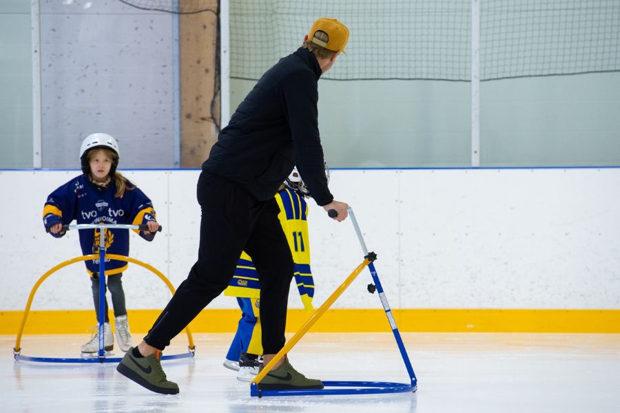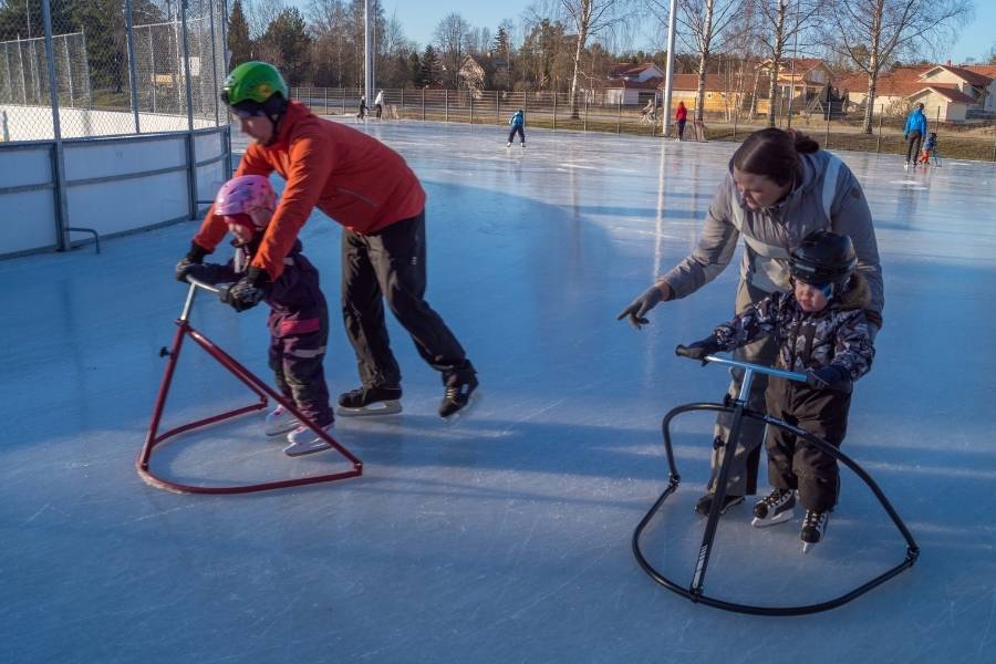 TykeSkateR skautaþjálfinn er ætlaður fyrir þá sem þurfa aðstoð á skautum eða eru að stíga sín fyrstu skref á skautasvellinu. Skautaþjálfinn er hæðarstillanlegur og hentar því öllum aldurshópum ungum sem öldnum. Hægt er að fá hjól á þjálfann svo hægt er að nota hann með línuskautum á sumrin. Einnig er í boði háir armstuðningar sem veita góðan stuðning, auðvelt að brjóta saman til geymslu eða til að ferðast með. Neðri hluti þjálfans er úr galvaniseruðu stáli sem er slítsterkt og gefur góða endingu. Kringlótt lögun skautaþjálfans lágmarkar mótstöðu sem lætur hann renna auðveldlega yfir ísinn.