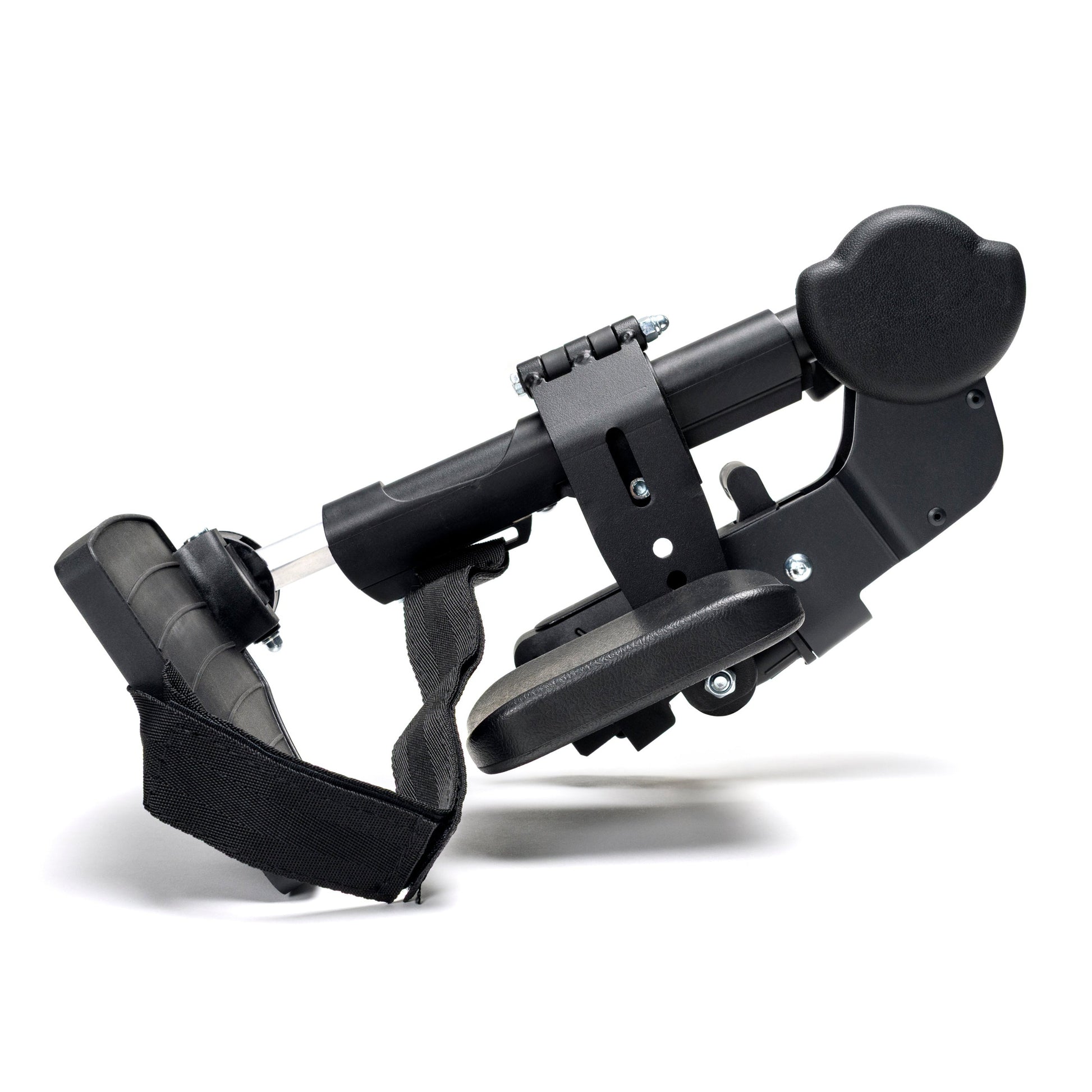 Upphækkanlegar fótafjalir fyrir D200 krossramma hjólastóla. Fótafjalirnar styðja við fót sem þarf að vera í beinni stöðu af ýmsum ástæðum eða ef notandi getur ekki beygt hné. Hægt er að stilla fótafjalir á marga vegu og aðlaga að notanda hverju sinni. Auðvelt að taka af og festa á einnig er hægt að slá fótafjalir frá með einu handtaki.