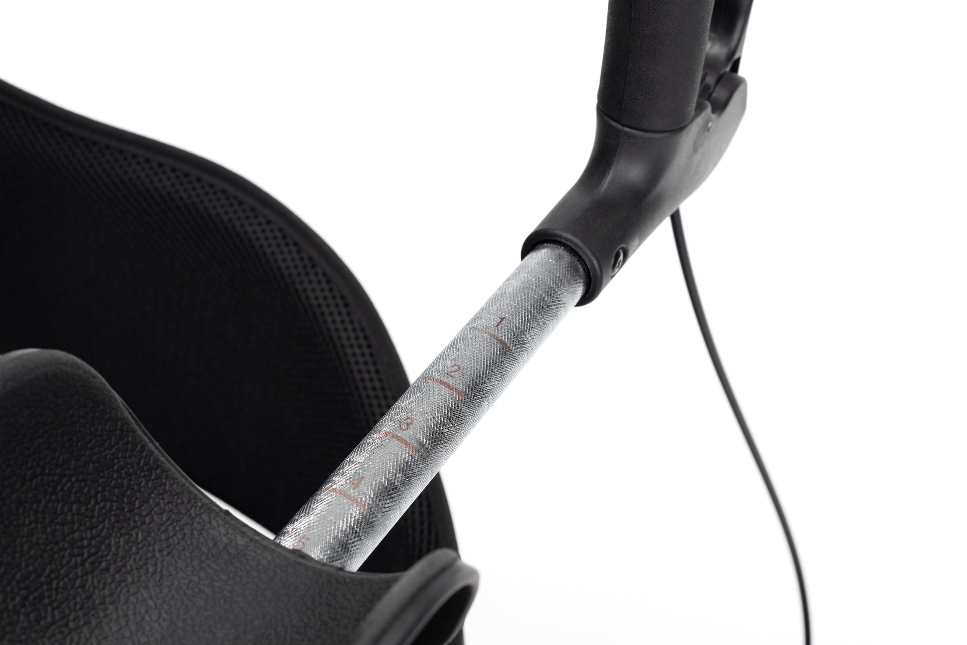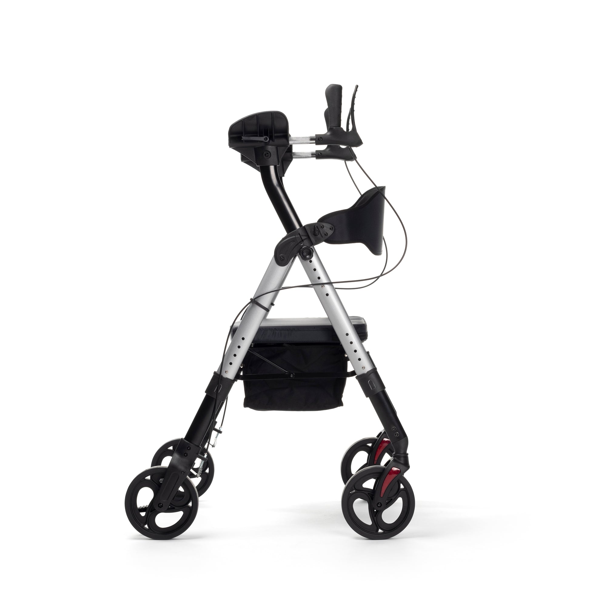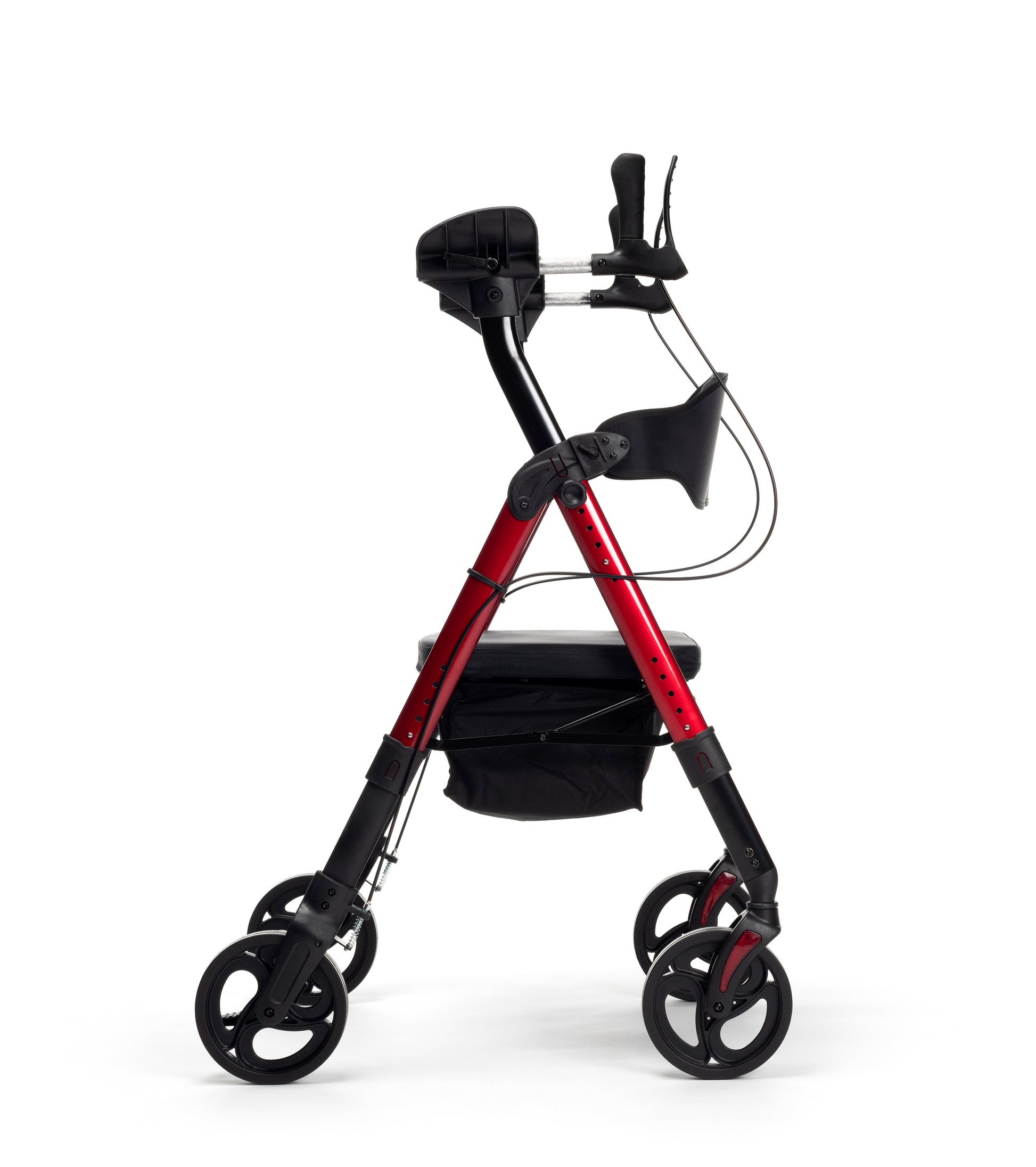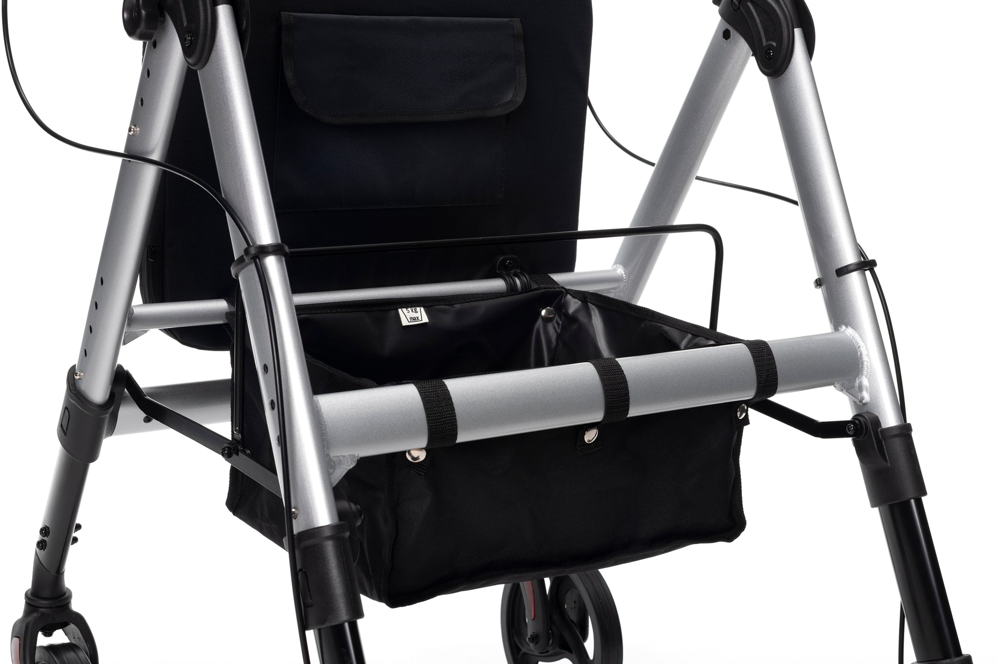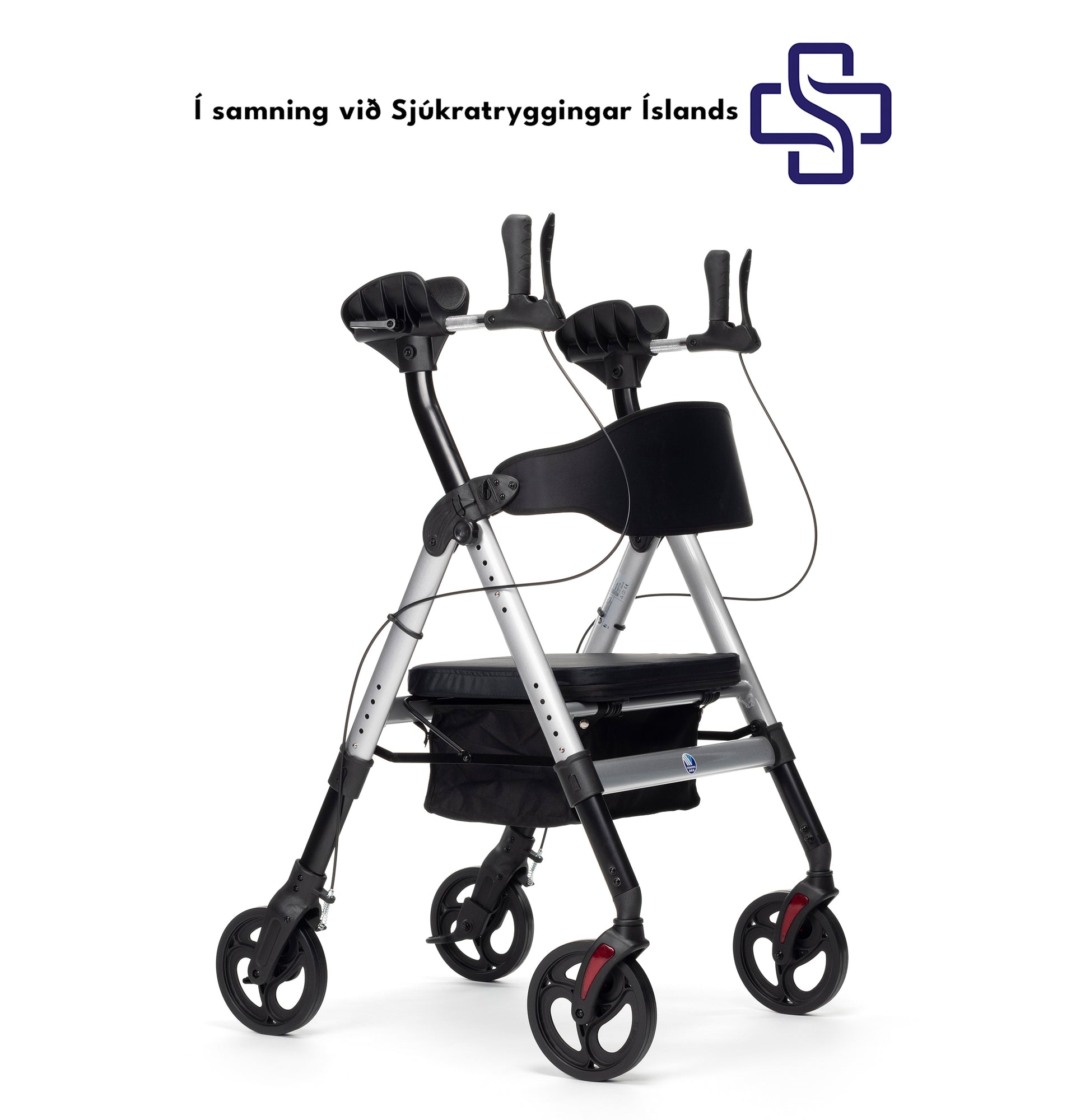 Stöðug og öflug há göngugrind með mikið burðarþol. Hentar einkum notendum sem eru 165-205cm á hæð. Einfalt að leggja saman til flutnings. Hæðarstillanleg ergonómísk handföng með handbremsu og stöðubremsu. Hæðarstillanlegt fóðrað sæti og bakstuðningur sem hægt er að taka af. Handföng og sæti hæðarstillt án verkfæra. Tvö ástig við aftari hjól. Geymslutaska með vasa undir sæti.