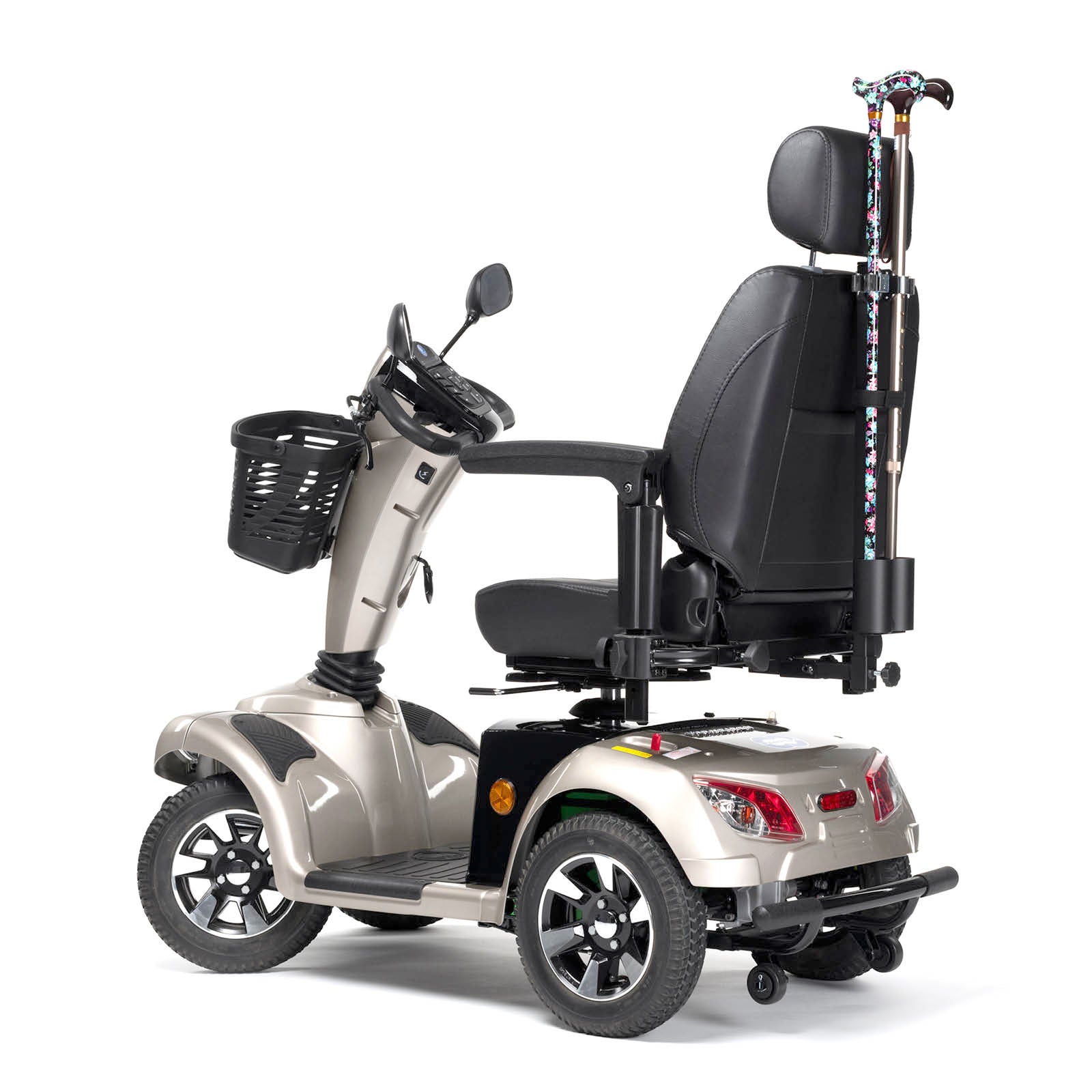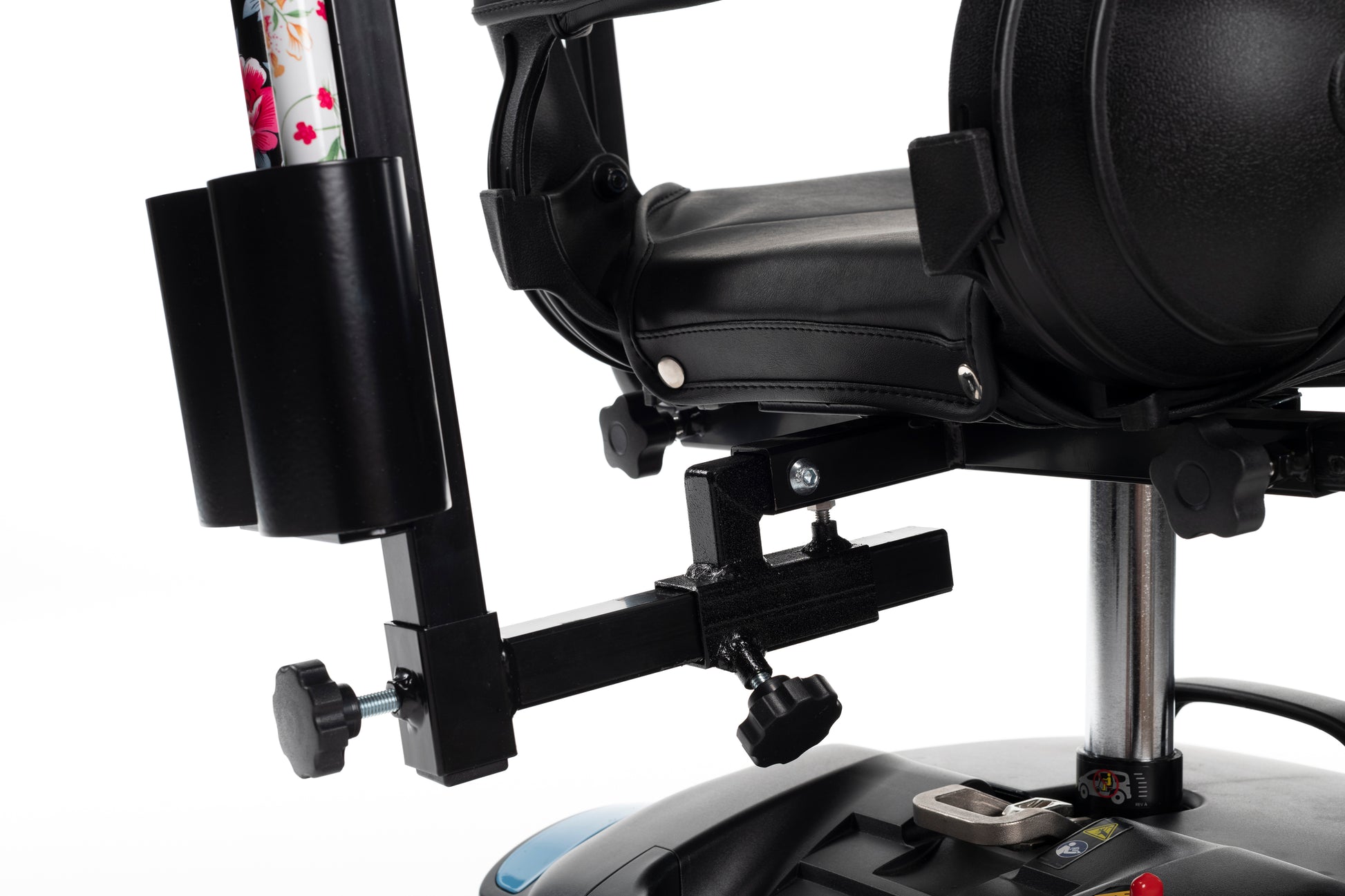 Hækju- og stafahaldari sem gengur fyrir flestar gerðir af rafskutlum, m.a. Vermeiren One, Ceres SE og Karma 747 rafskutlur.