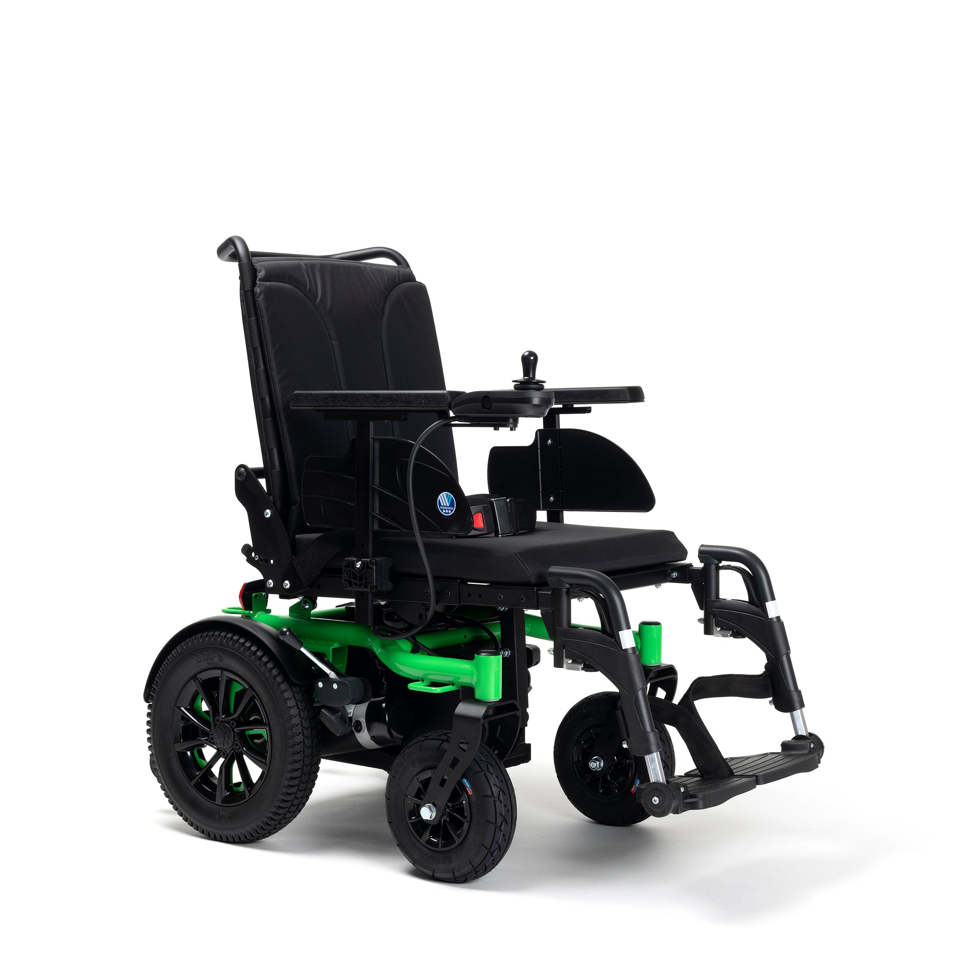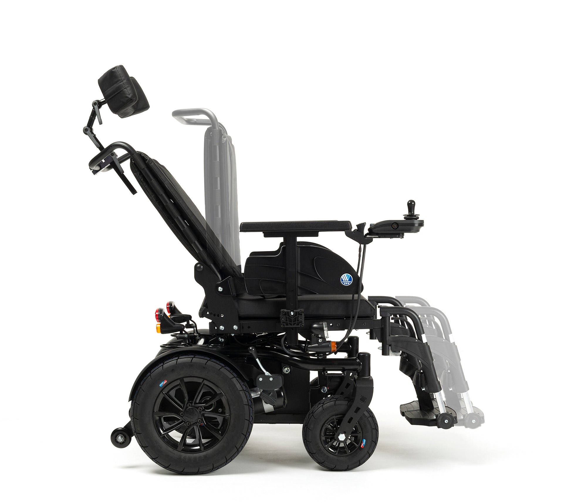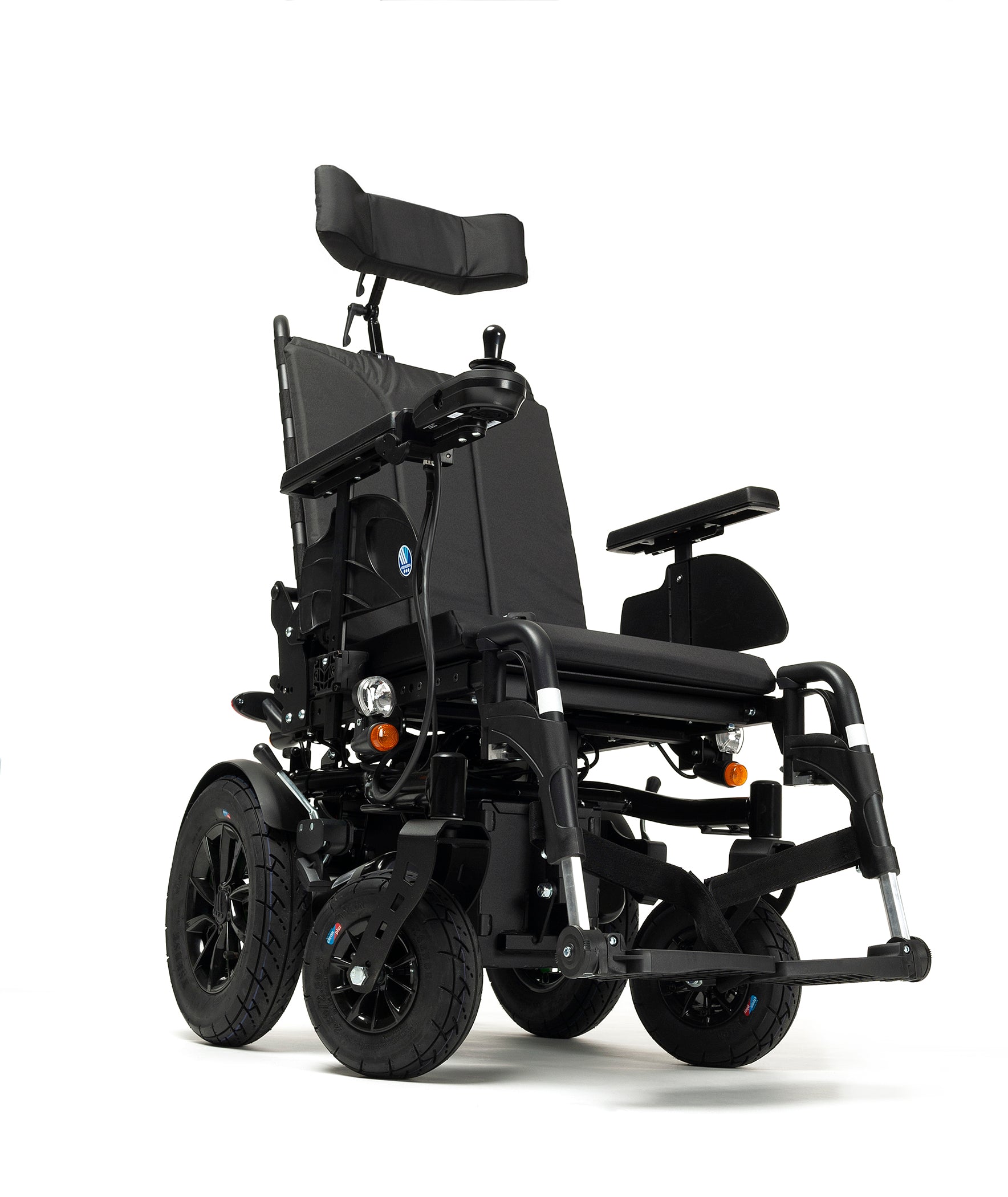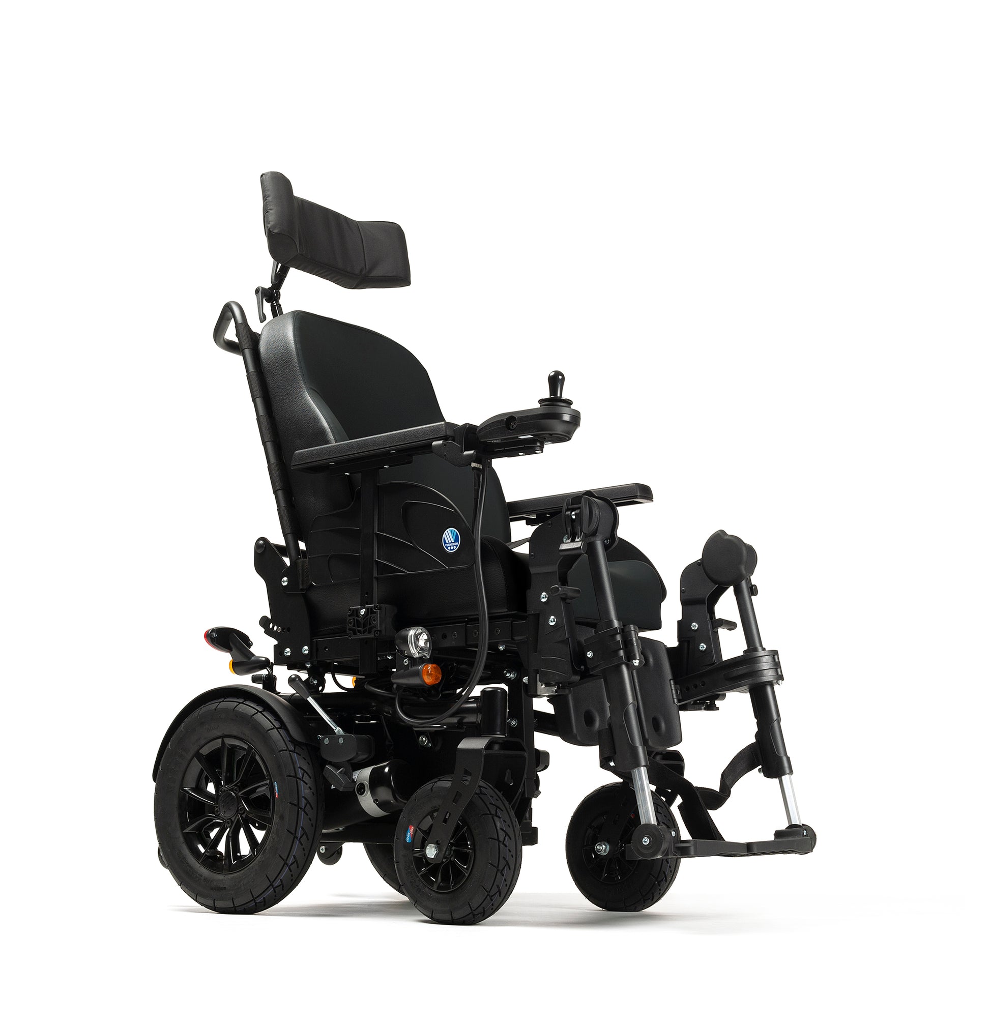 Turios er nettur rafmagnhjólastóll með mikla aðlögunarhæfni. Heildarbreidd er einungis 58-64cm og hentar því smærri rýmum innandyra. Með ögflugu afturhjóladrifi og vali á stórum framdekkjum kemst hann yfir óstöðugt undirlag utandyra. Einn helsti kosturinn við þennan stól er að hann má fara í flugvél. Batterí hafa verið sannreynd og vottuð. Kemur í þremur setbreiddum og gott burðarþol.