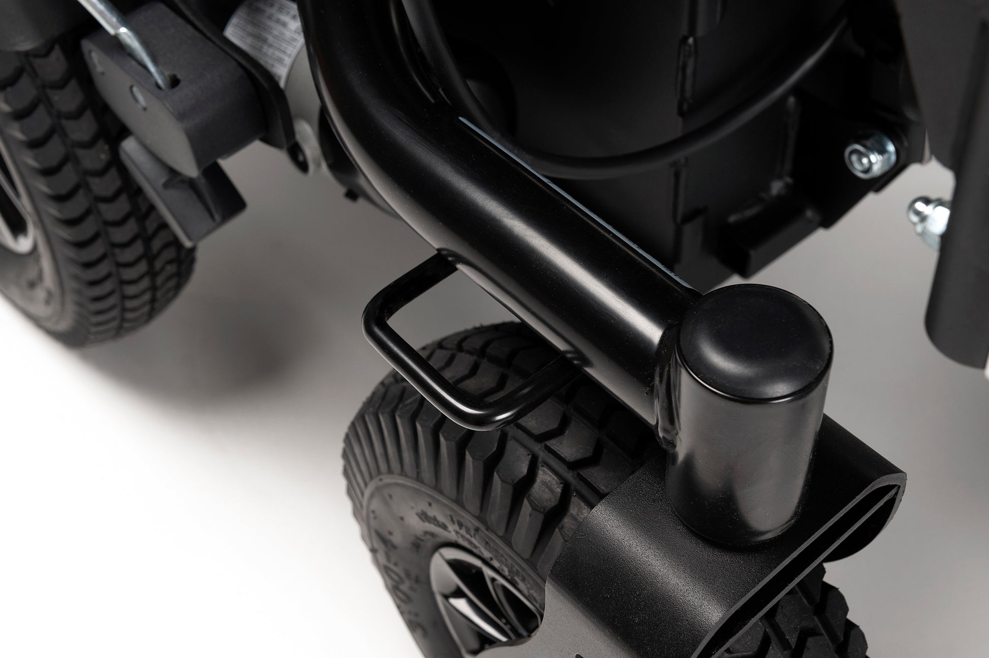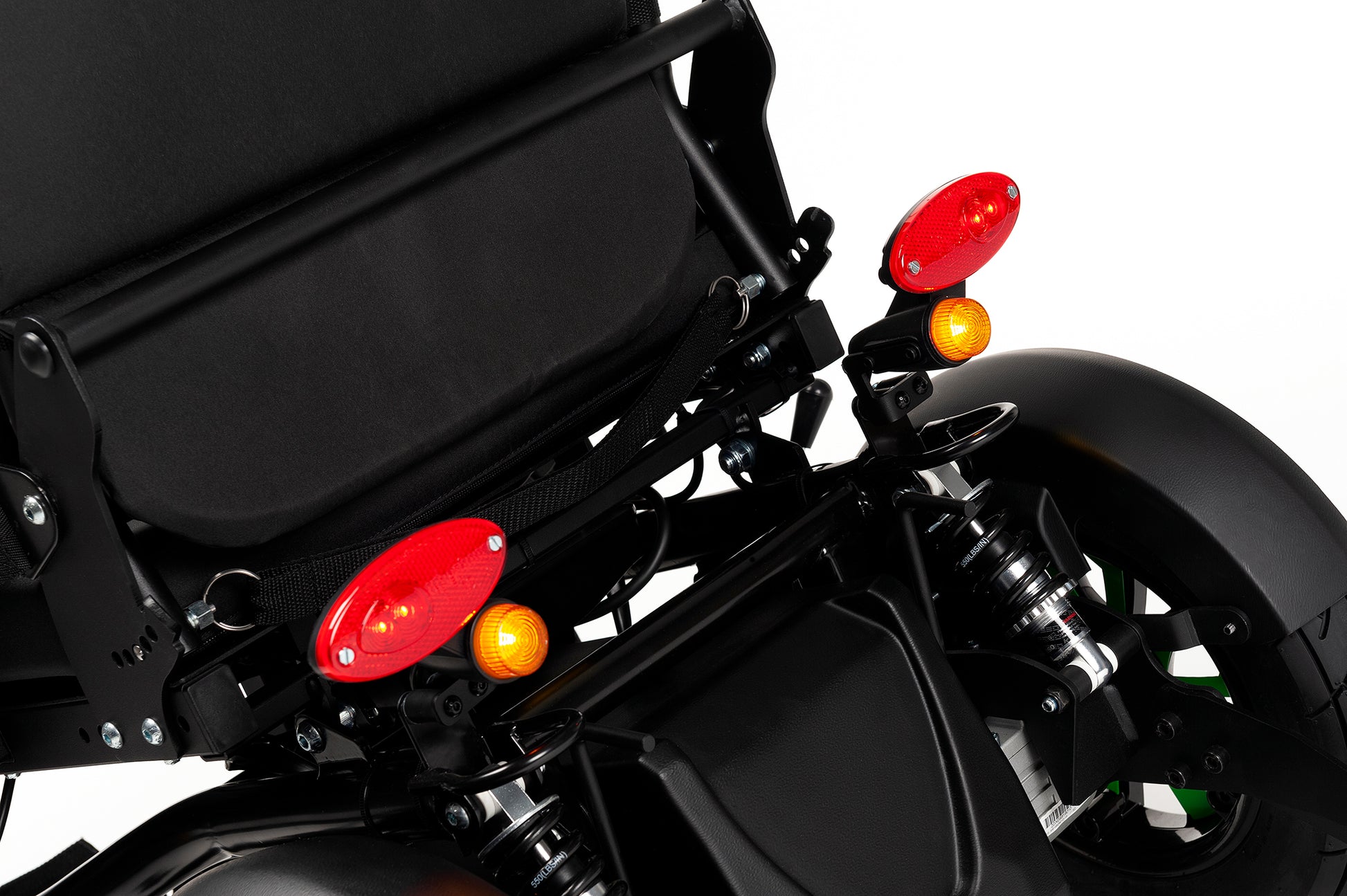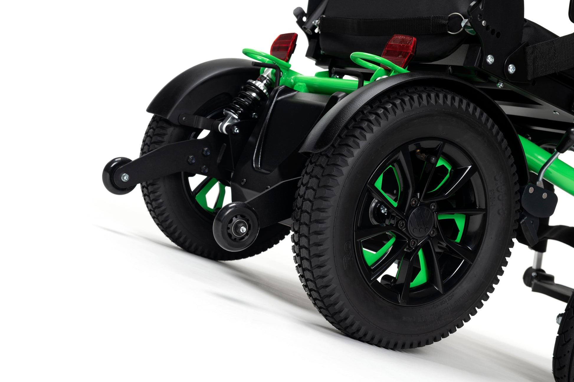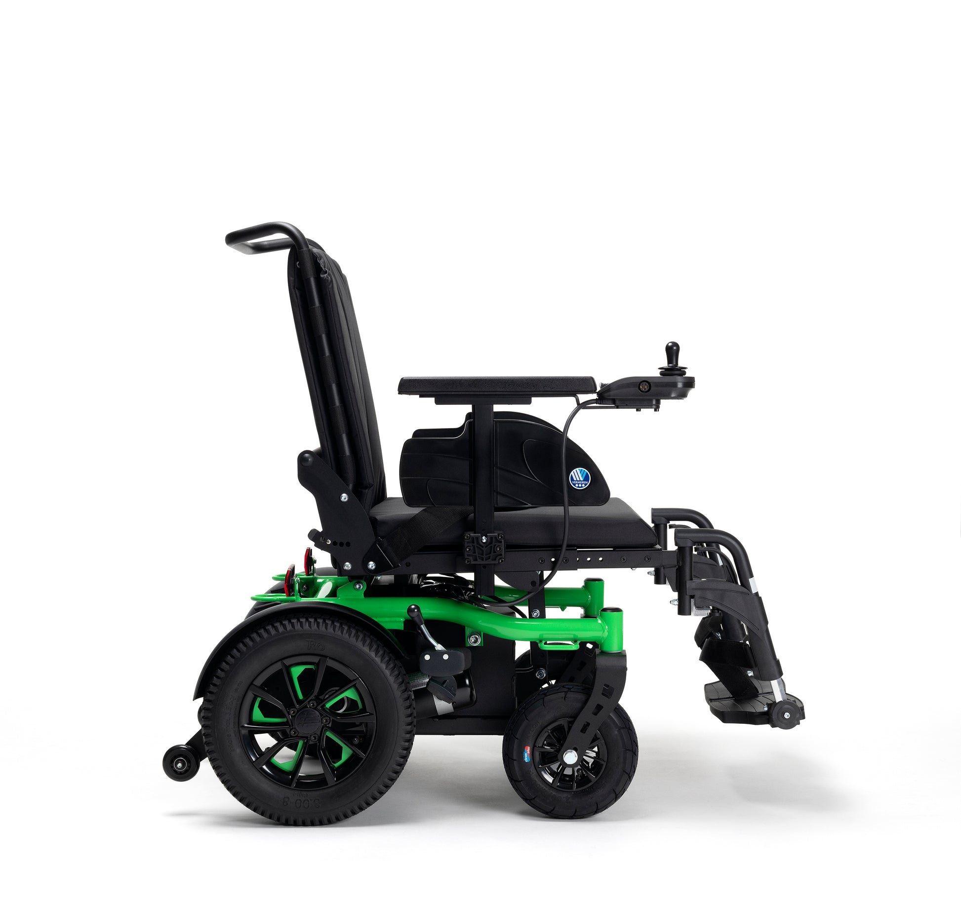 Turios er nettur rafmagnhjólastóll með mikla aðlögunarhæfni. Heildarbreidd er einungis 58-64cm og hentar því smærri rýmum innandyra. Með ögflugu afturhjóladrifi og vali á stórum framdekkjum kemst hann yfir óstöðugt undirlag utandyra. Einn helsti kosturinn við þennan stól er að hann má fara í flugvél. Batterí hafa verið sannreynd og vottuð. Kemur í þremur setbreiddum og gott burðarþol.