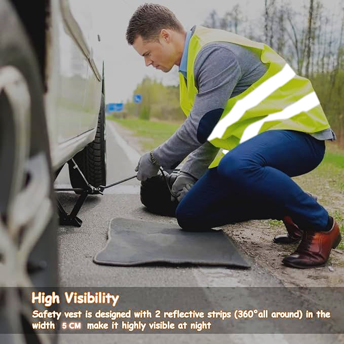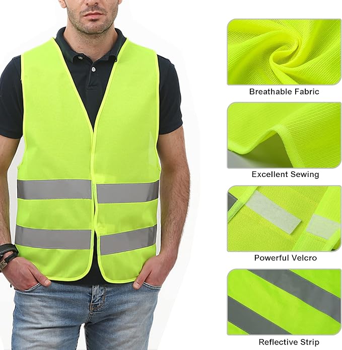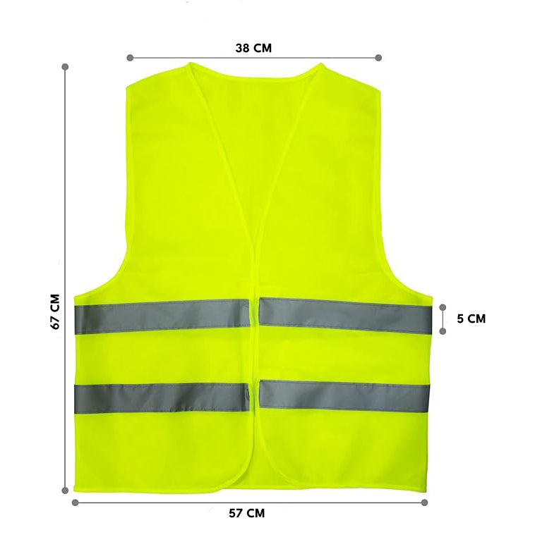 High visibility vesti sem veitir aukið öryggi í myrkri og lélegum birtuskilriðum. Vestin eru í einni stærð sem passar flestum. 100% pólýester.