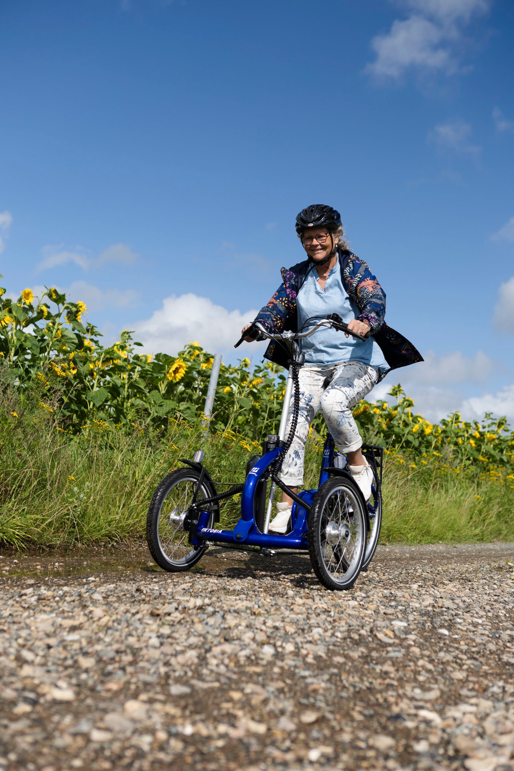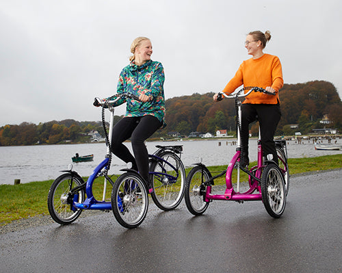Viktoria er sérstaklega hannað fyrir þá sem eiga erfitt með að meta breidd þríhjóla, þar af leiðandi tvö dekk að framan. Sérstakelga stöðugt í beygjum og með lágu innstigi svo auðvelt er að setjast á hjólið. Handhægt að reiða.