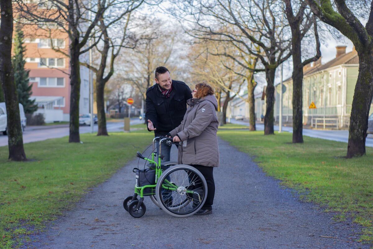 - Sameinar hjólastól og göngugrind í eitt tæki