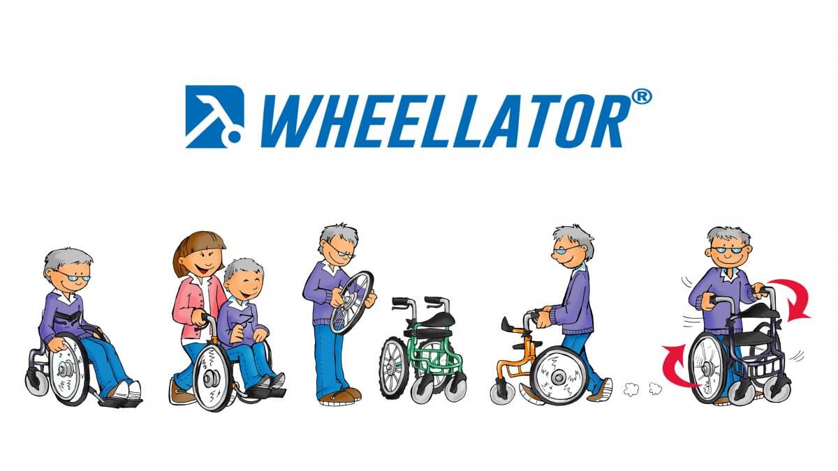 Wheellator er blendingur milli göngugrindar og hjólastóls þar sem hann sameinar bæði í einu tæki. Ef notandinn þarf að hvíla sig á göngutúr sínum getur hann einfaldlega snúið Wheellator við og sest niður og hvílt sig. Svo getur hann ýtt sér sjálfur eða fengið aðstoðarmann til að ýta sér áfram. Hæð baksins er stillanlegt og styður bak notandans þegar hann situr. Afturhjólin er hægt að fá grófari sem eru tilvalin fyrir þá sem vilja fara út fyrir malbikið. Hægt að taka hjólin af með því að ýta á hnapp á felgunni svo minna fari fyrir tækinu í flutning. Wheellator leggst einnig auðveldlega saman með því að þrýsta á einn takka.